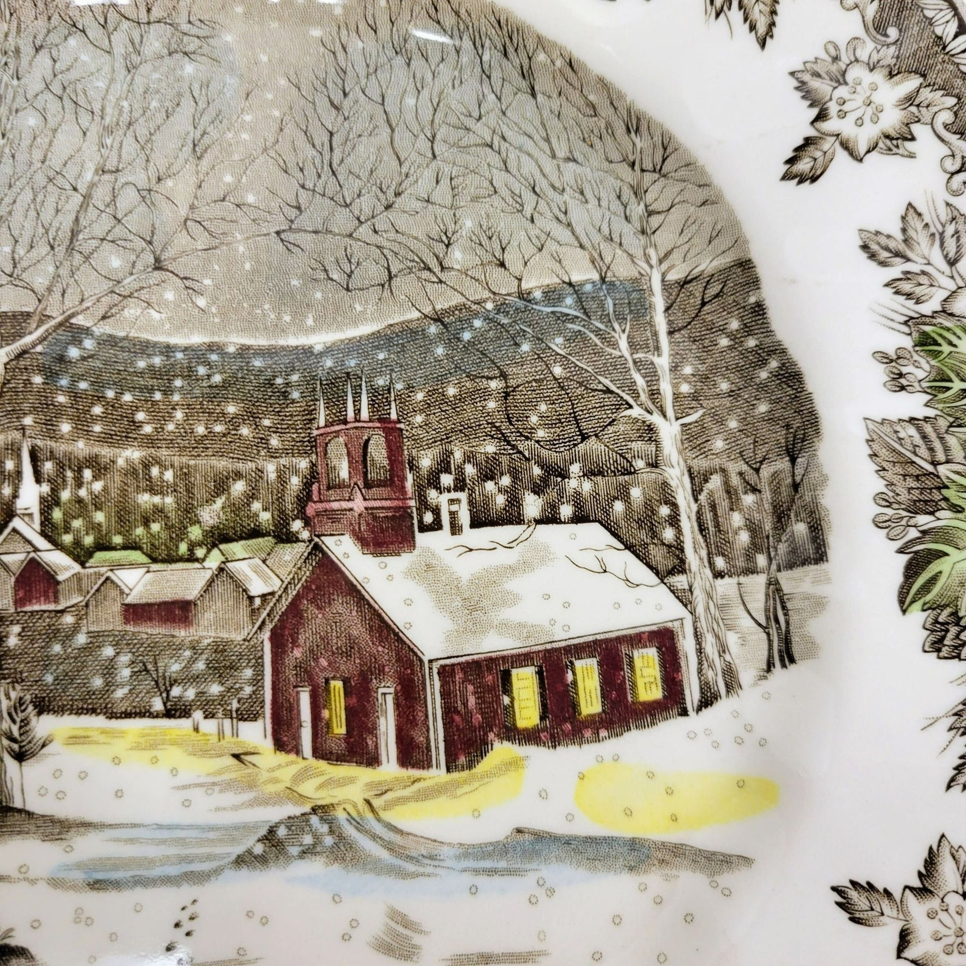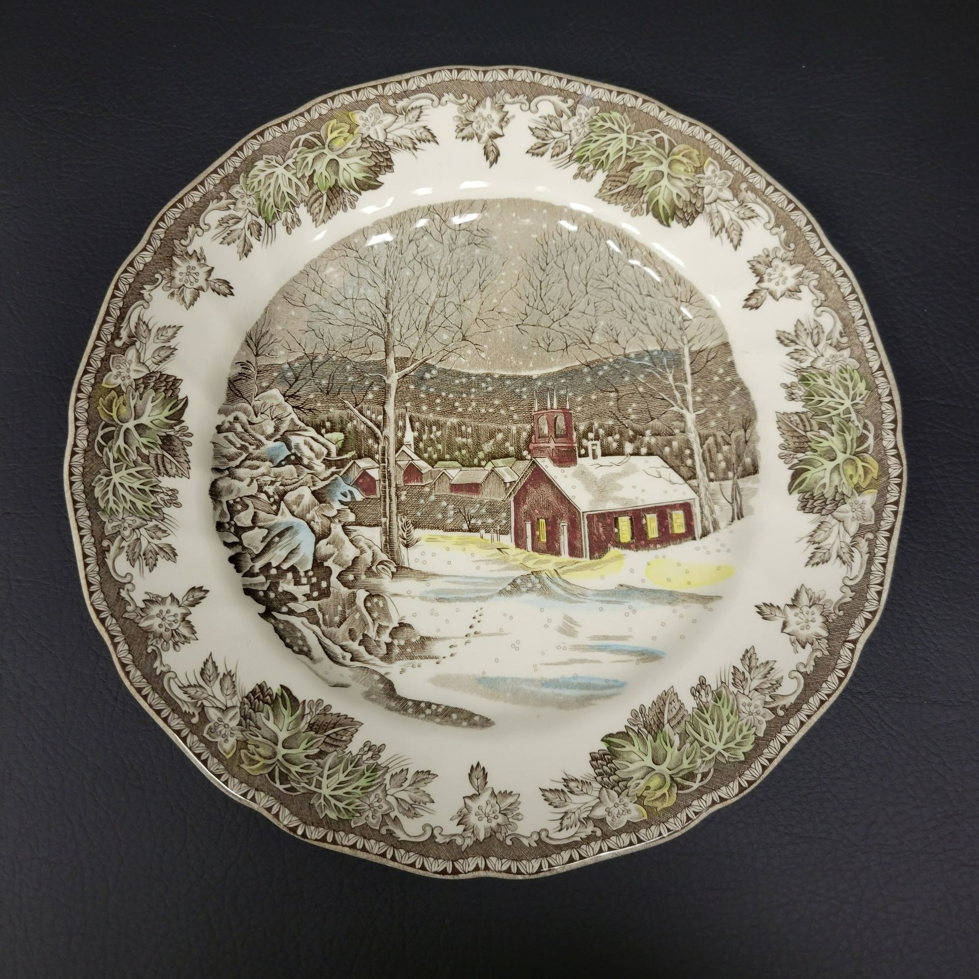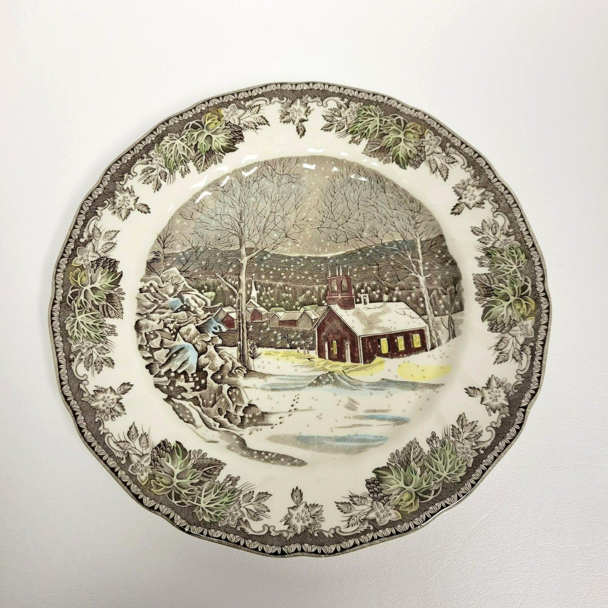 This Johnson Bros Friendly Village Dinner Plate, The School House, is a perfect addition to your winter collection. Made in England, it serves as a beautiful cottage wall winter décor.