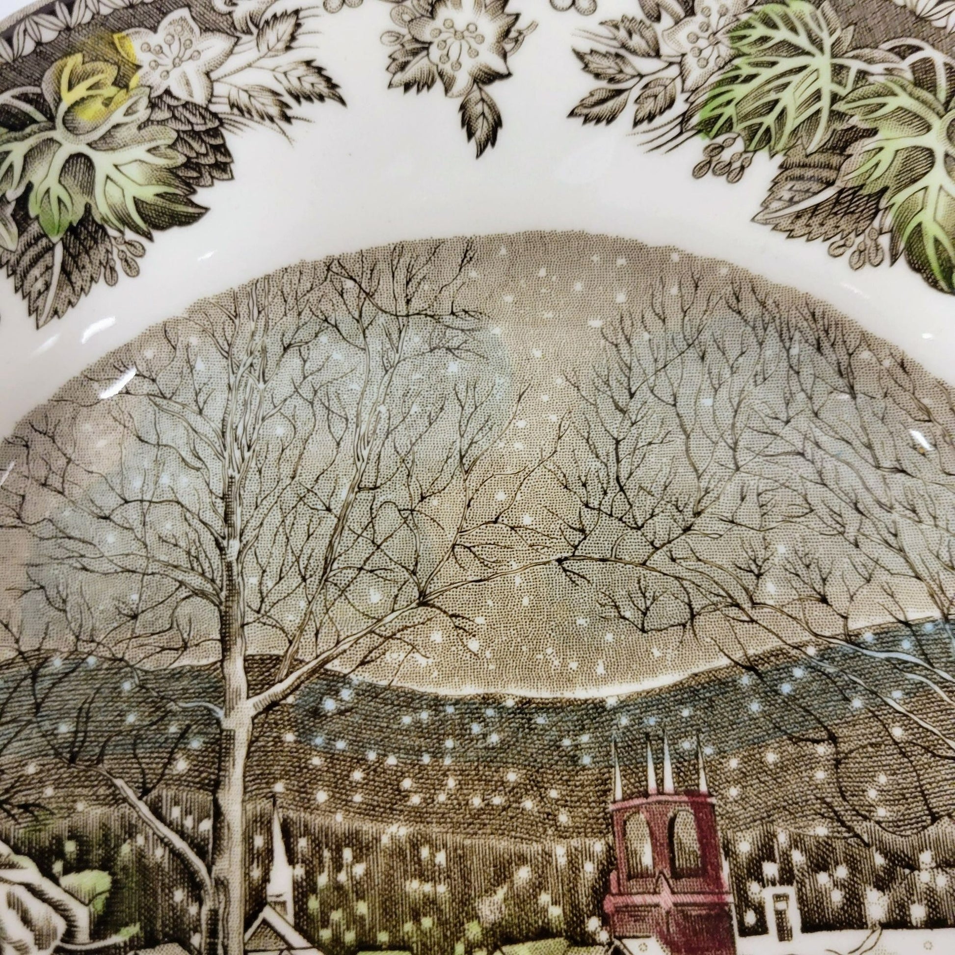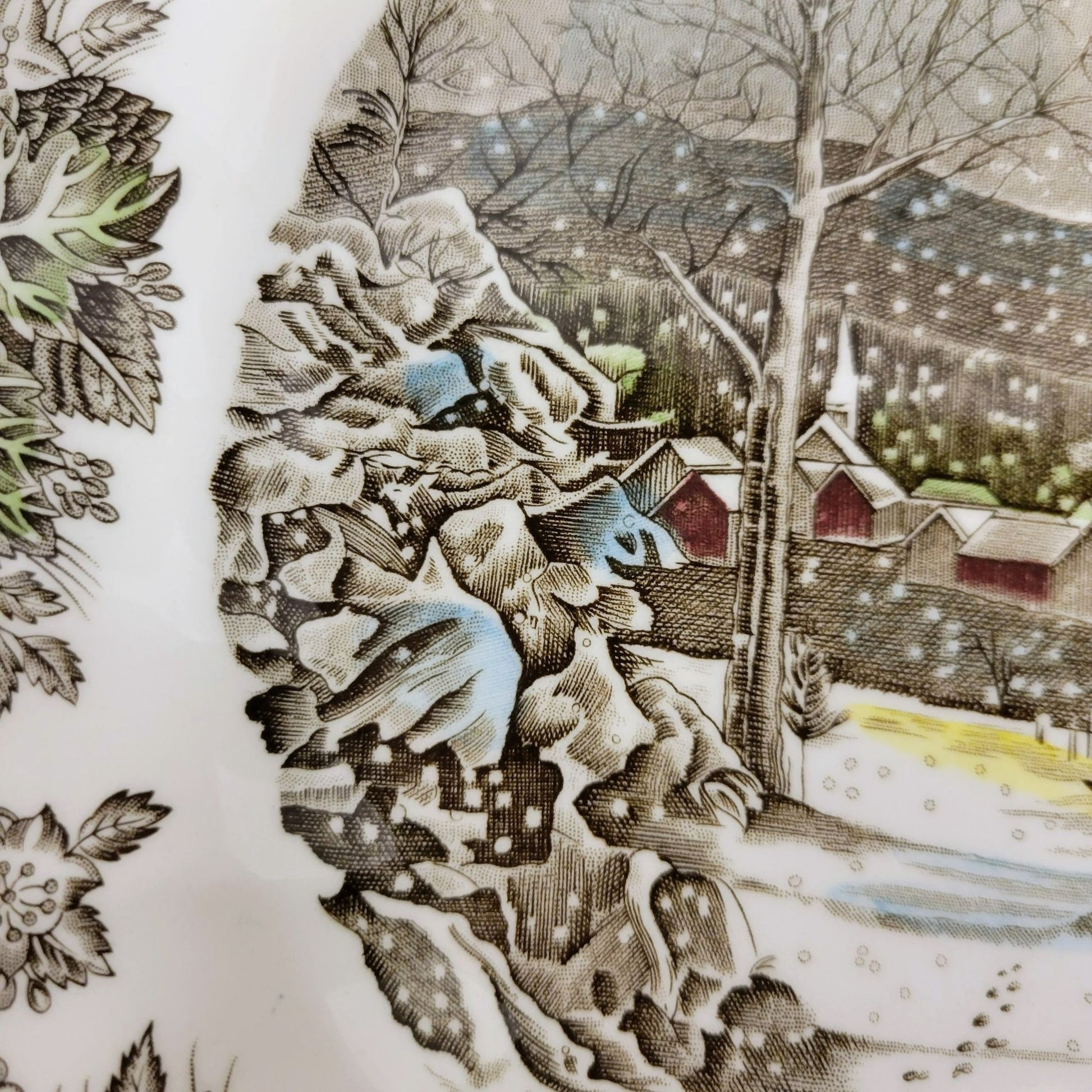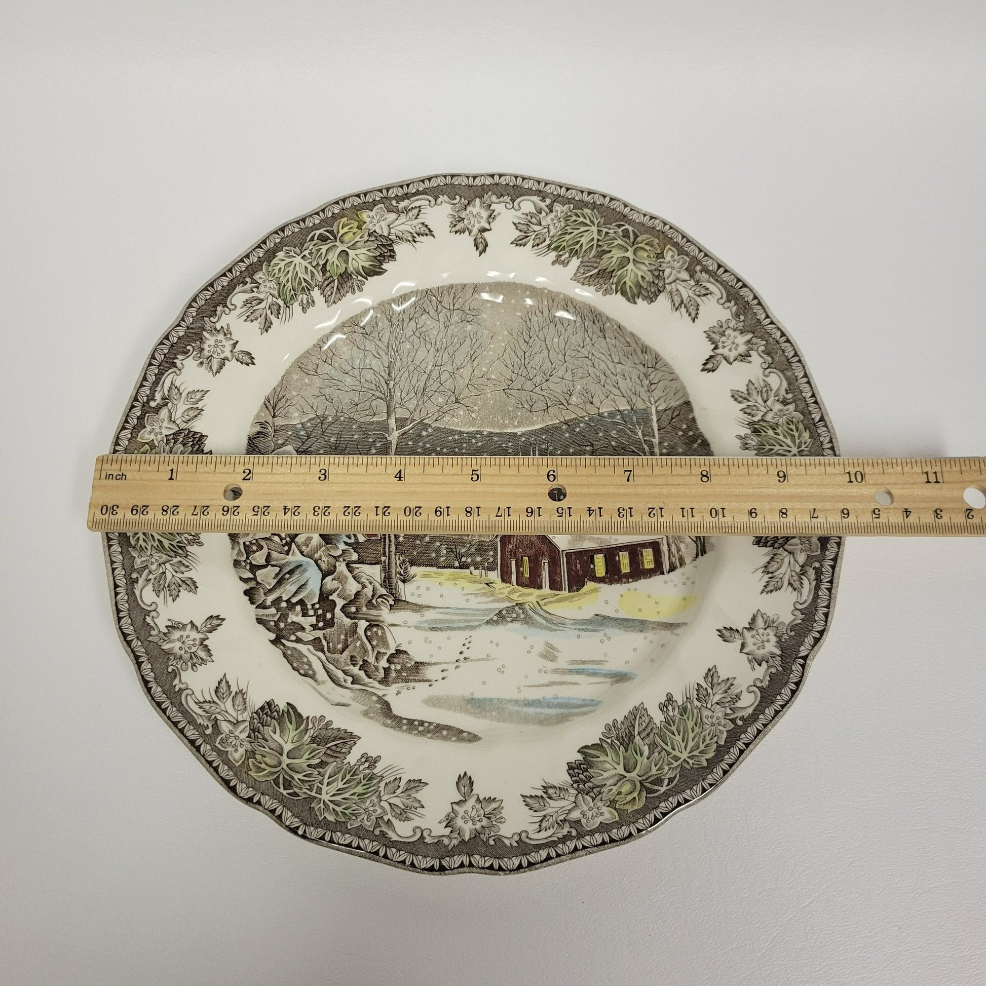 This Johnson Bros Friendly Village Dinner Plate, The School House, is a perfect addition to your winter collection. Made in England, it serves as a beautiful cottage wall winter décor.