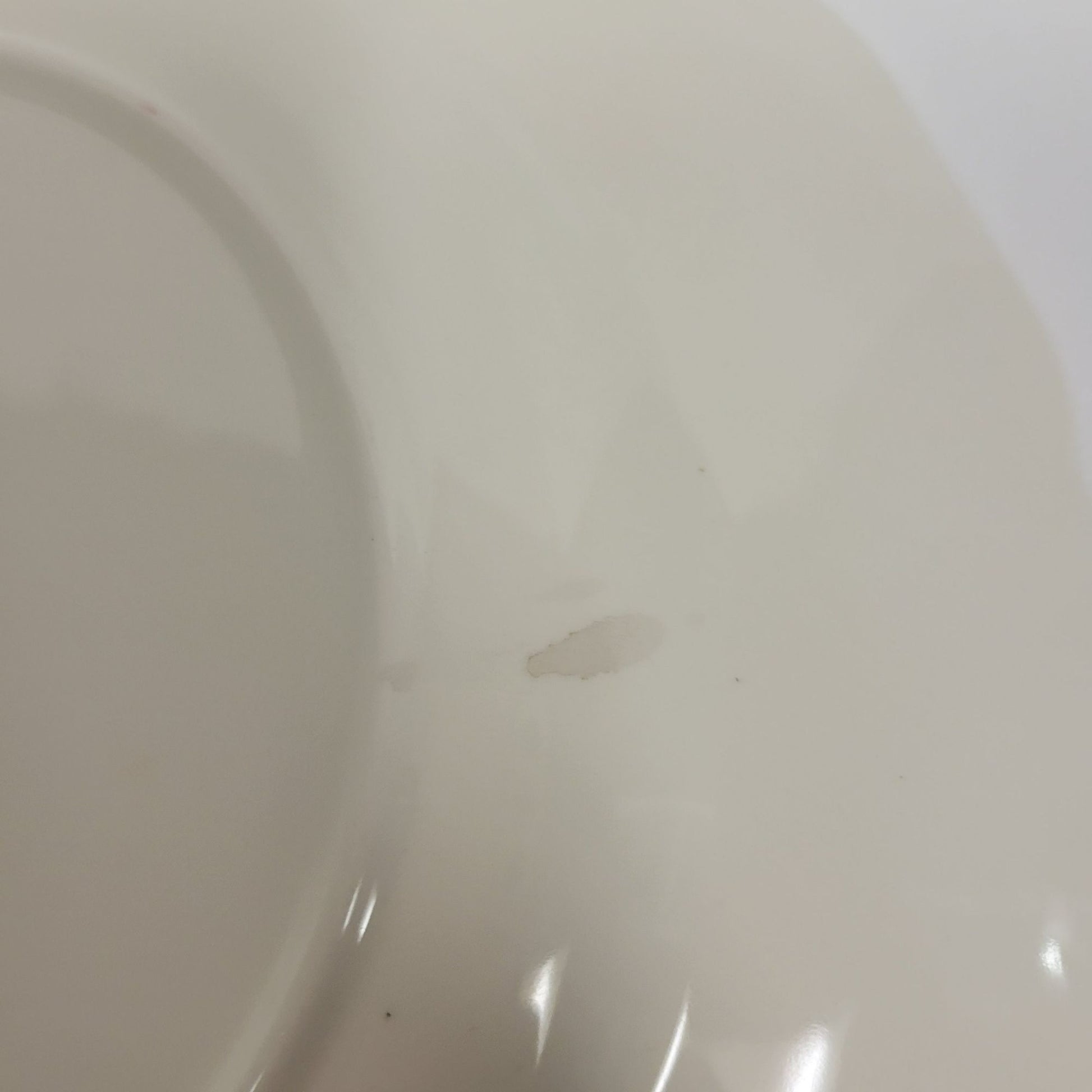 Plate is in great condition with no cracks or chips. There is a dark spot on the back that appears to be staining (see pic).