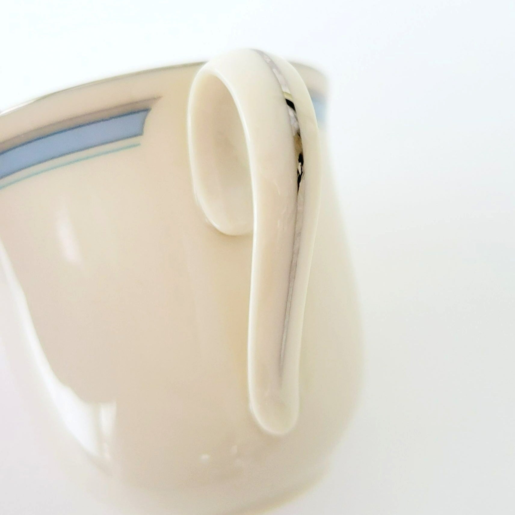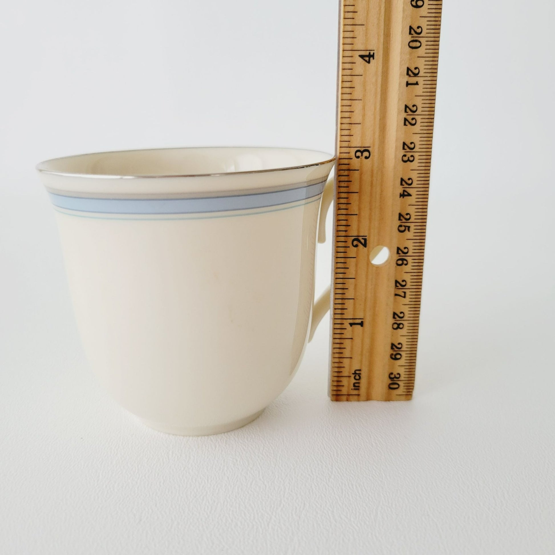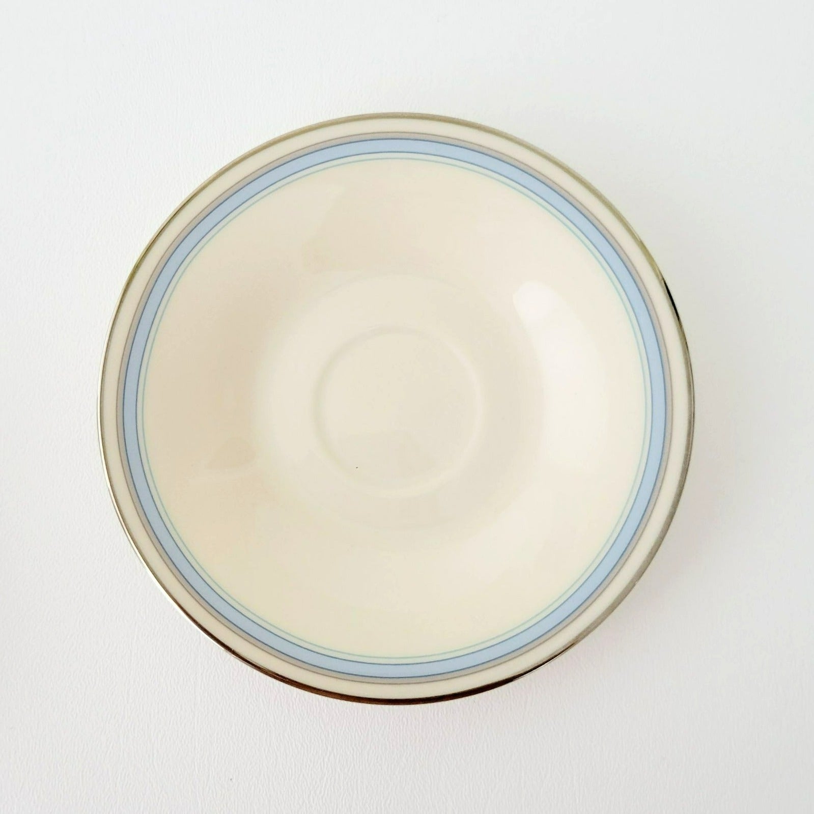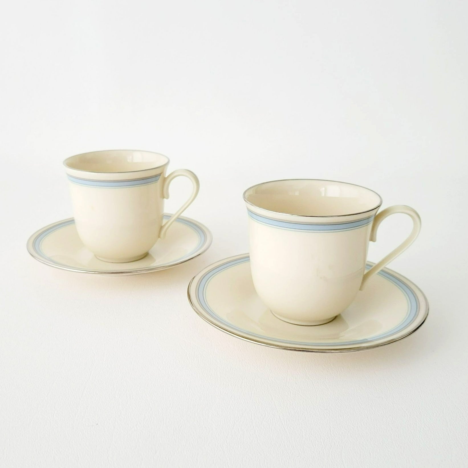 Lenox Bradford Teacup & Saucer, Cream with Blue & Platinum Trim, c.1980s USA Made