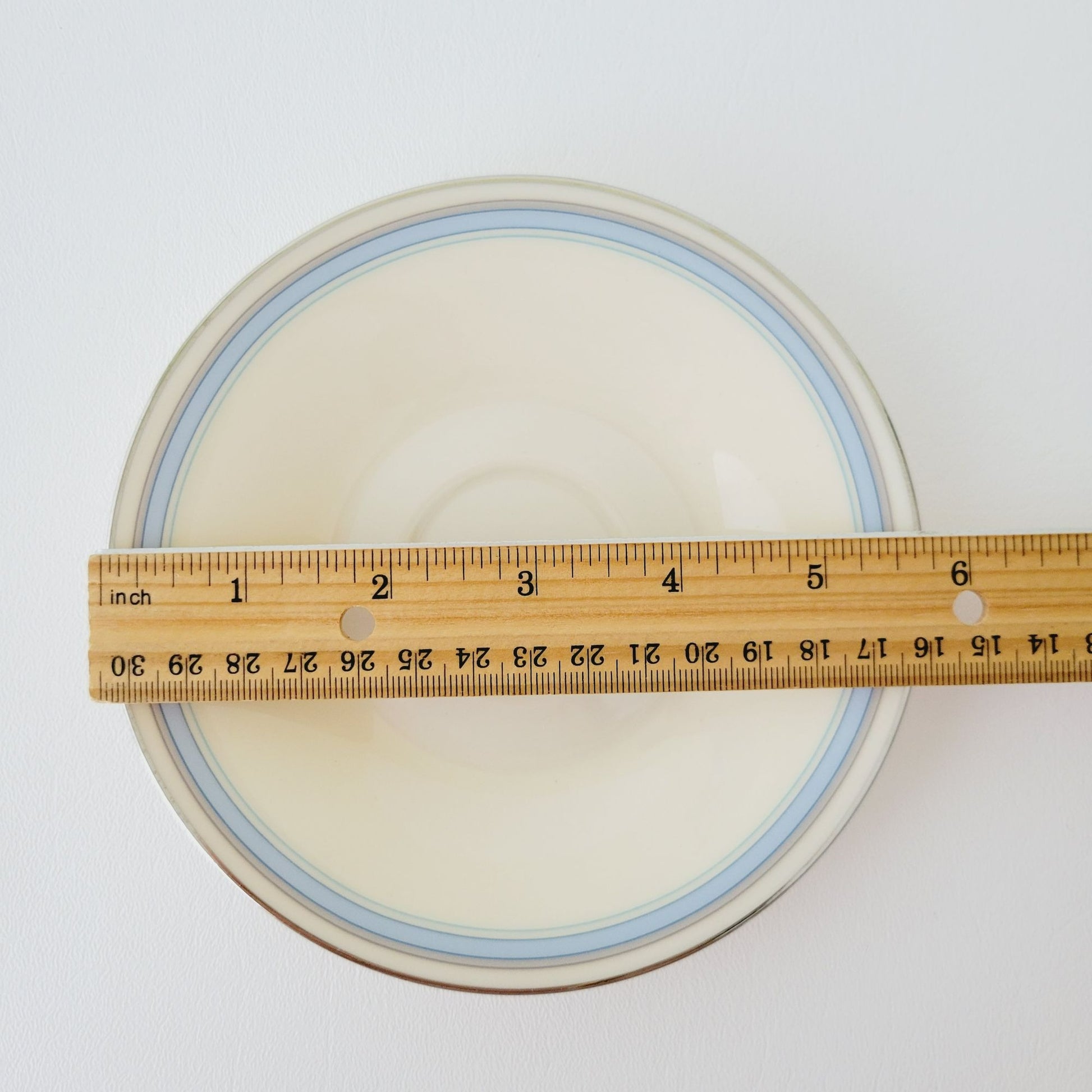 • Cream color with blue and platinum trim