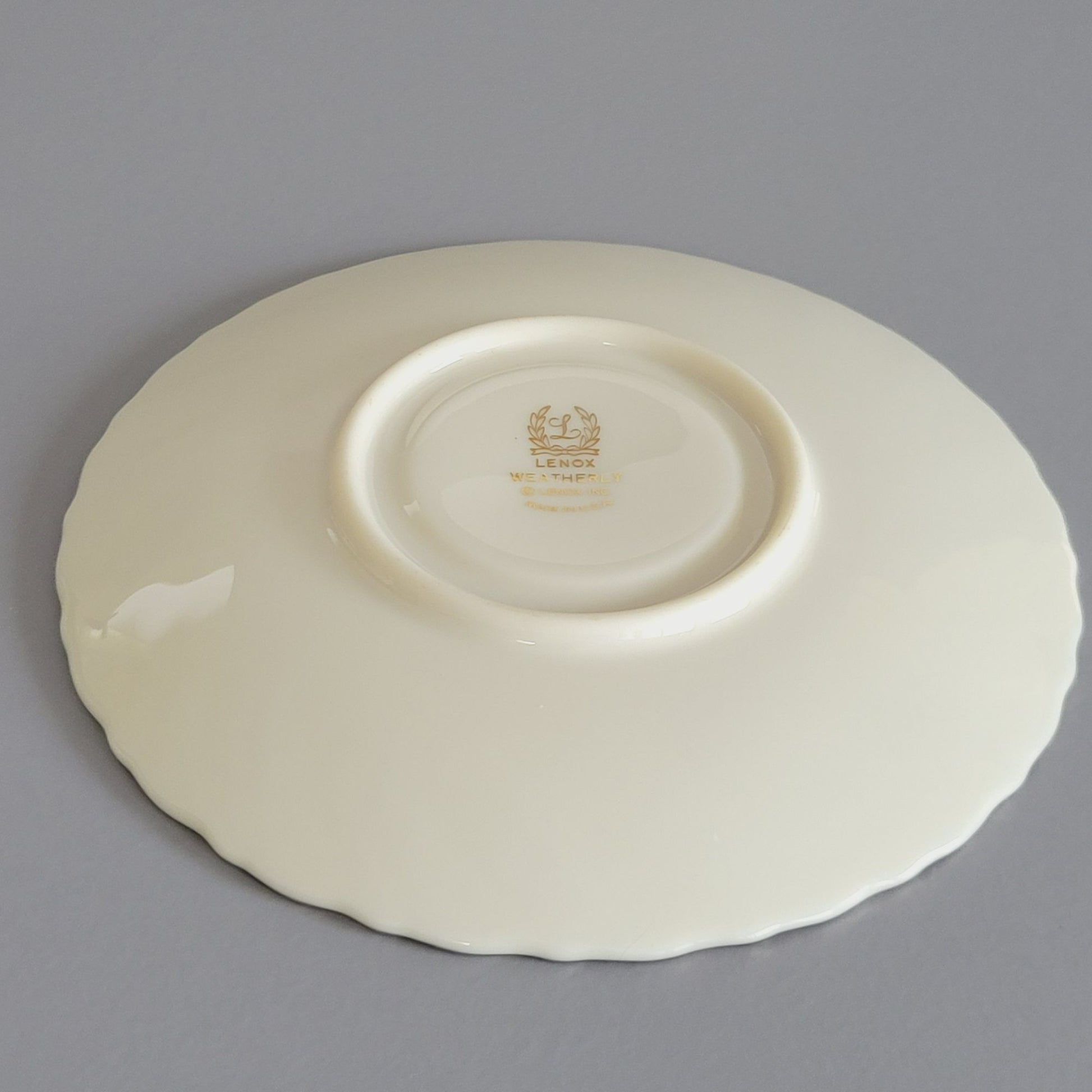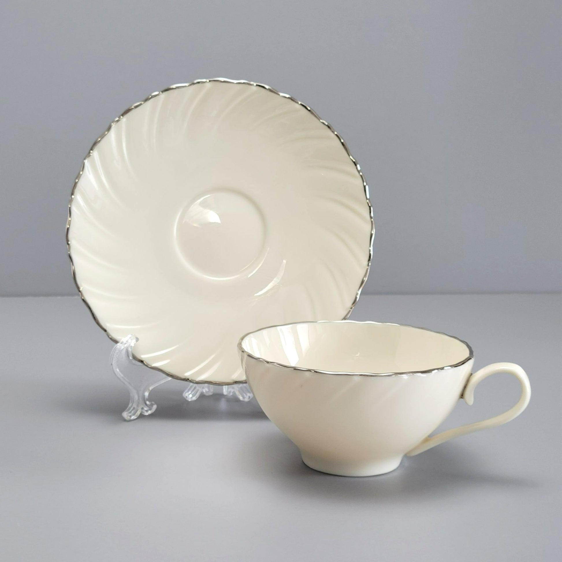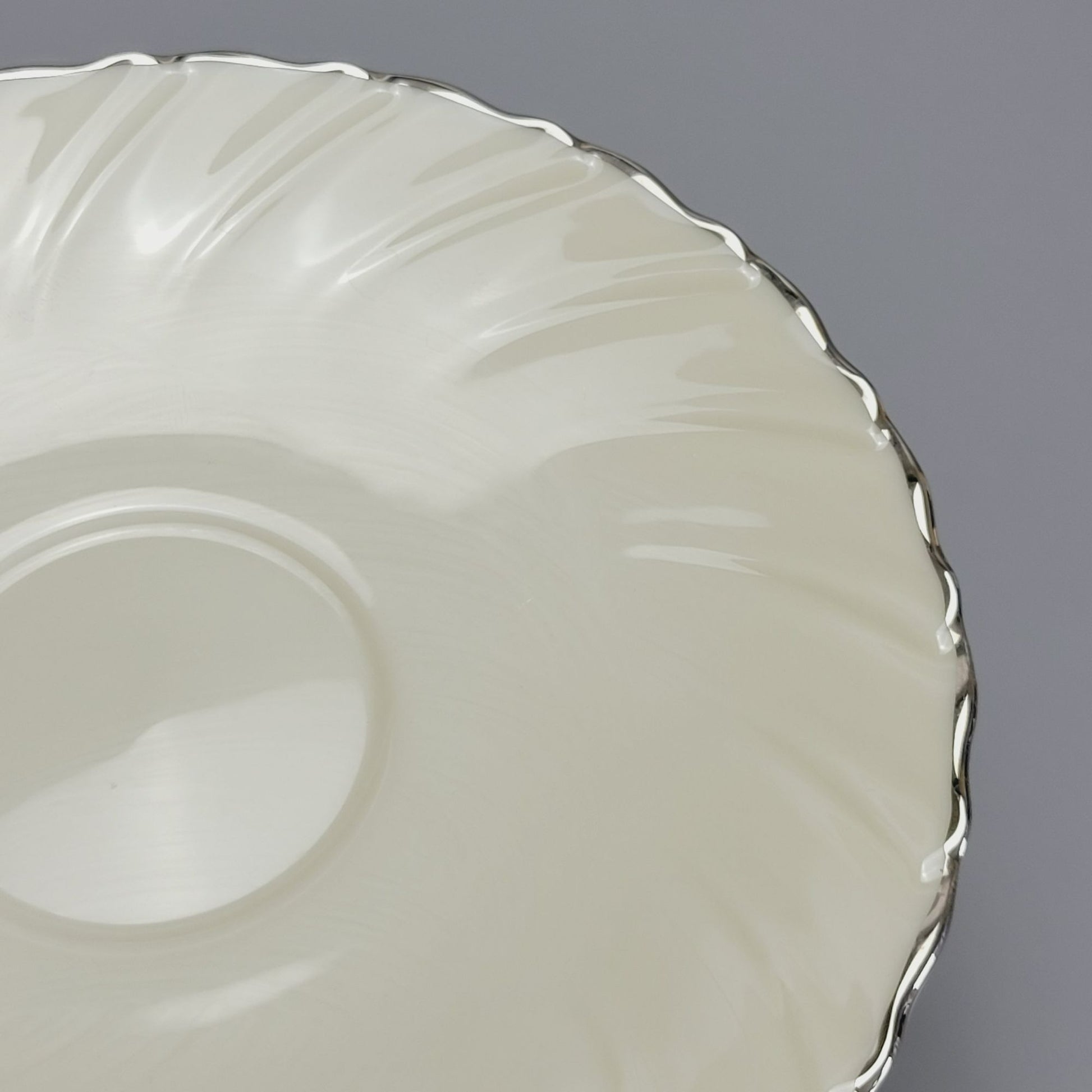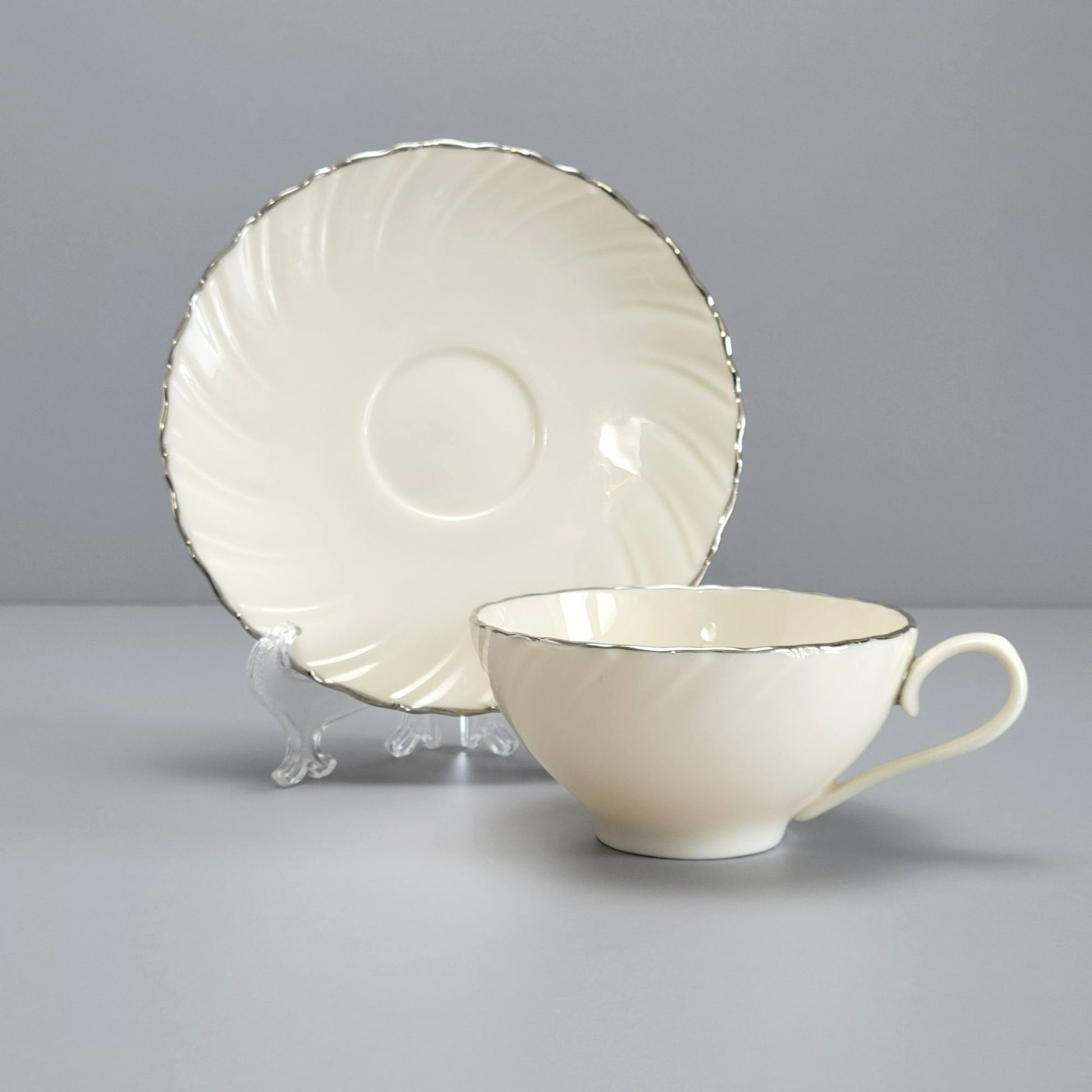 Vintage Lenox Weatherly Teacup & Saucer, Swirled Edge & Platinum Trim, c.1959-86 USA