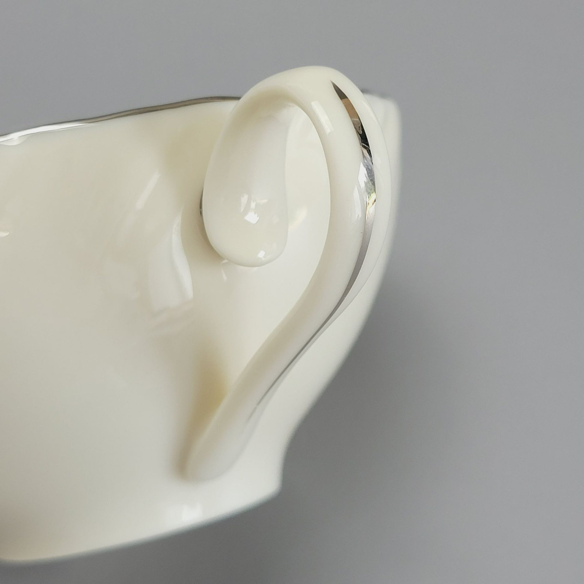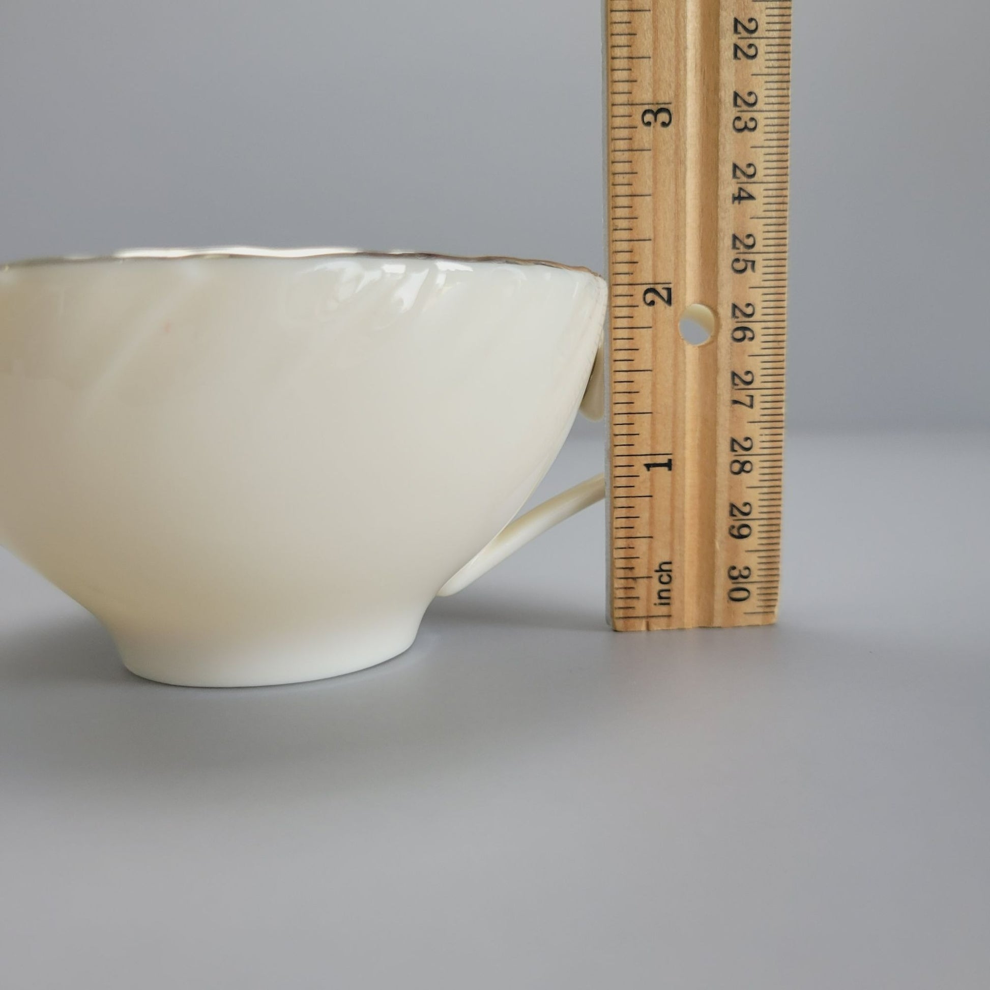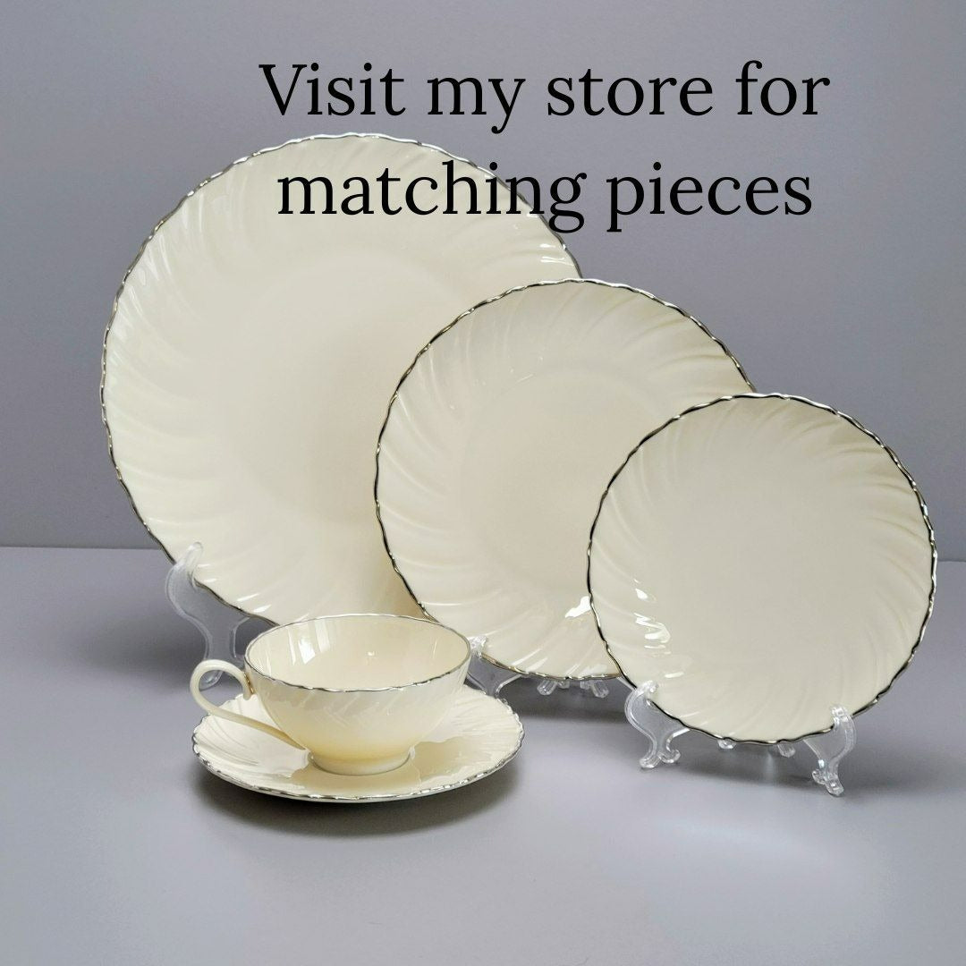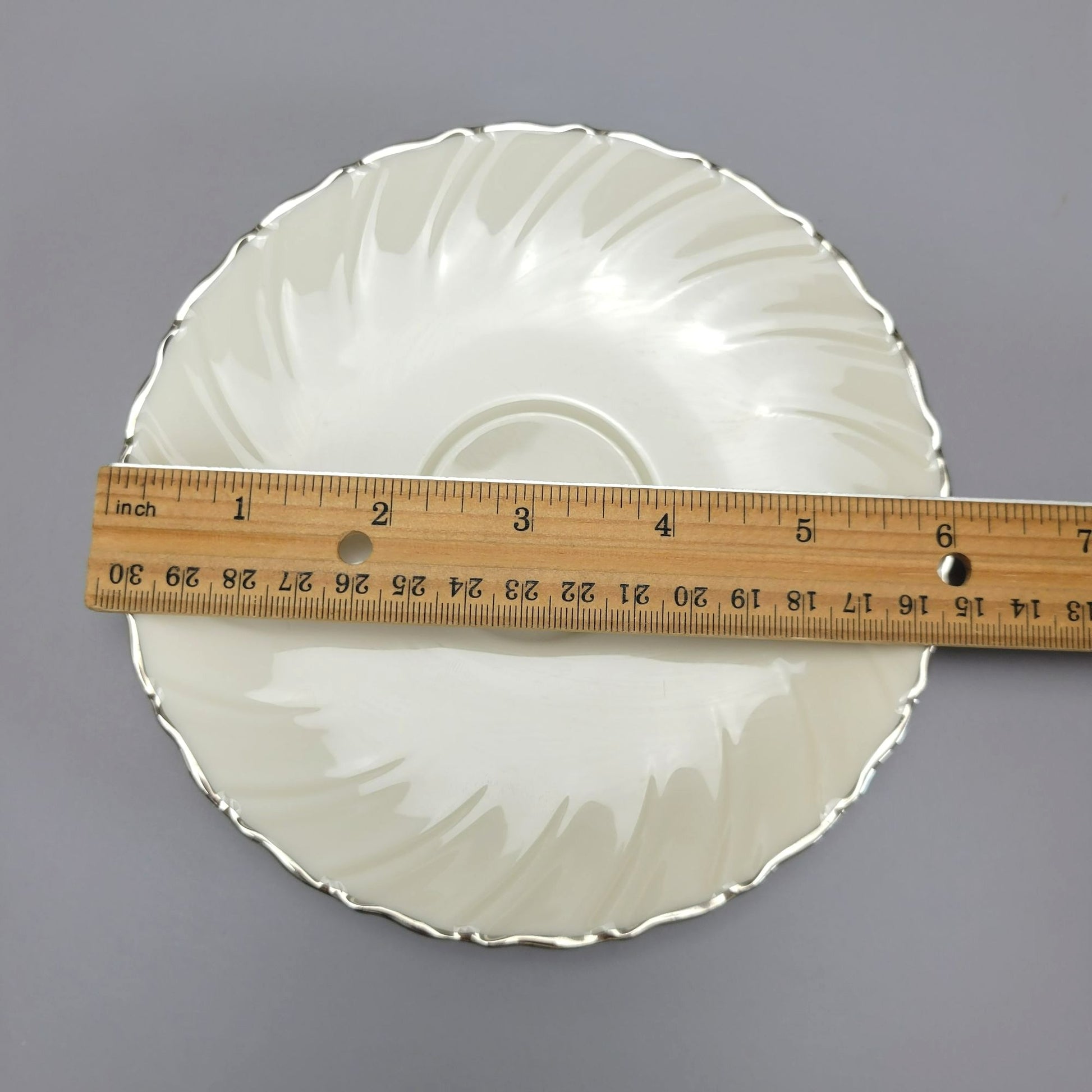 Vintage Lenox Weatherly Teacup & Saucer, Swirled Edge & Platinum Trim, c.1959-86 USA