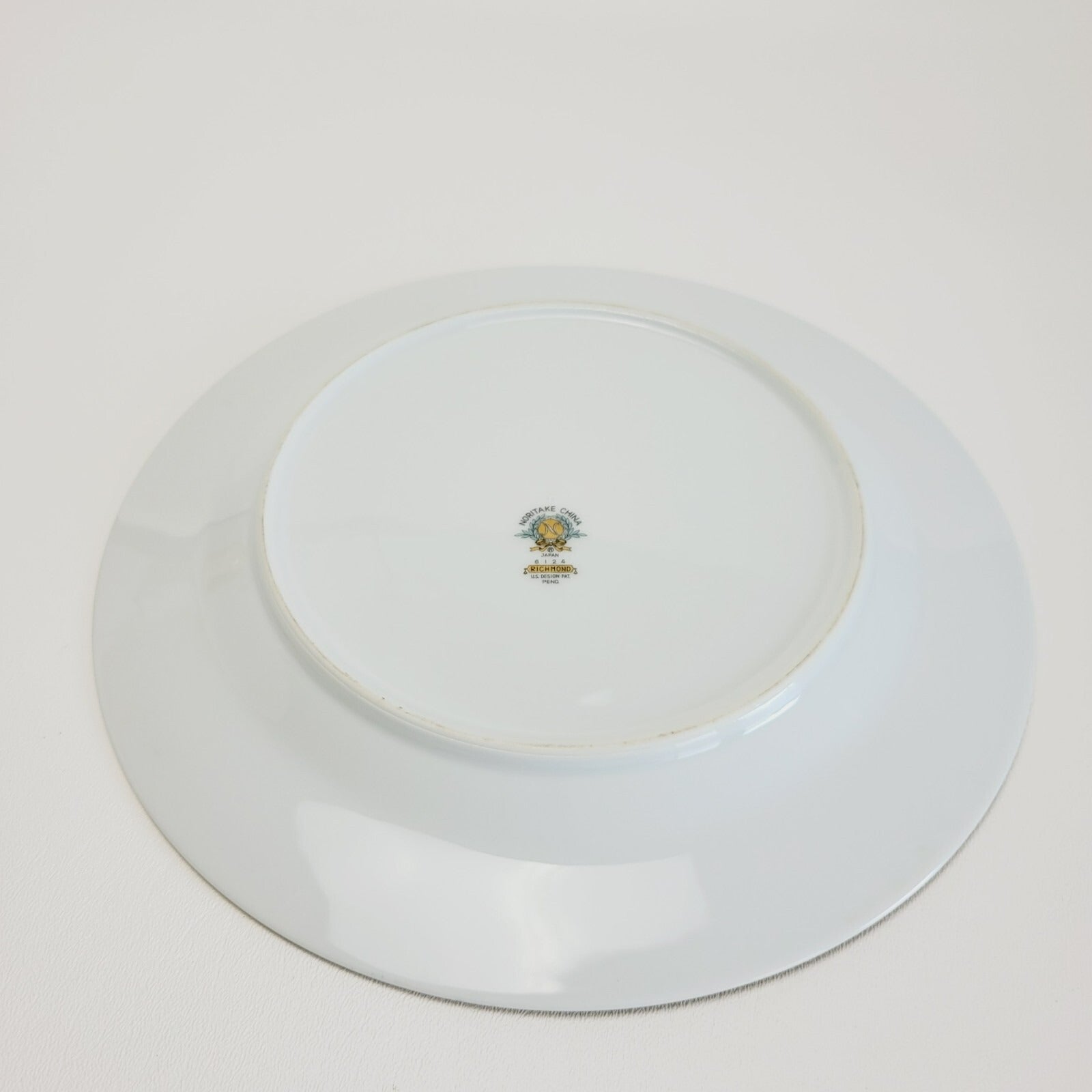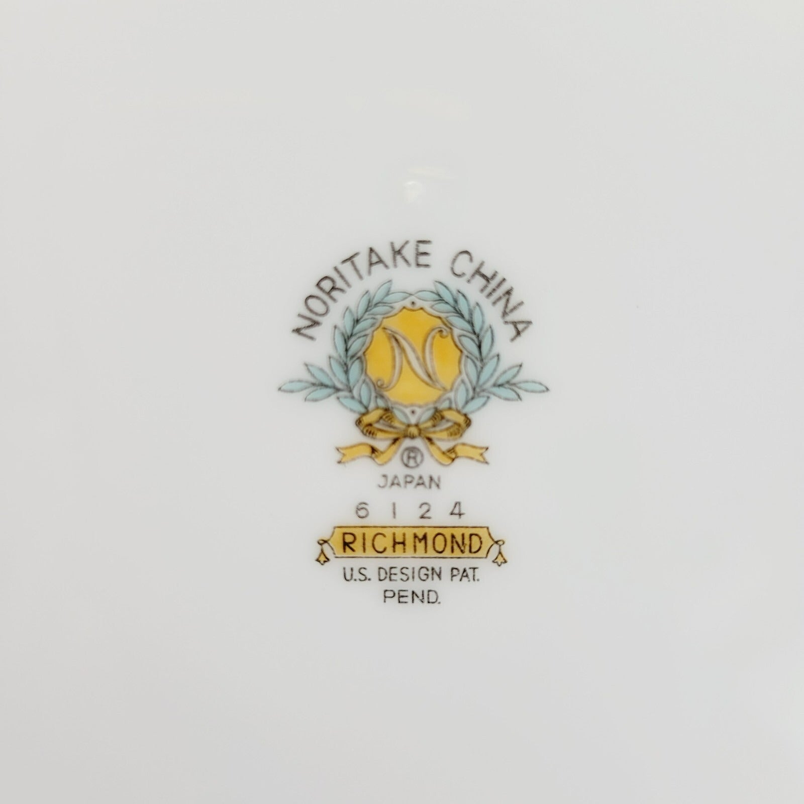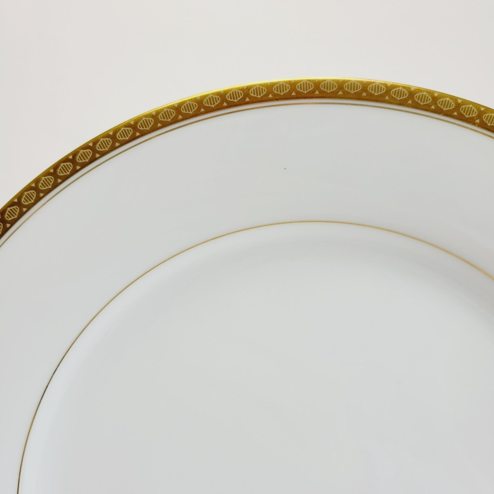 Classic vintage Noritake Richmond dinner plate set of 2. This elegant piece features a white base with a gold etched band, made in Japan, and serves as a stunning replacement for discontinued dinnerware.