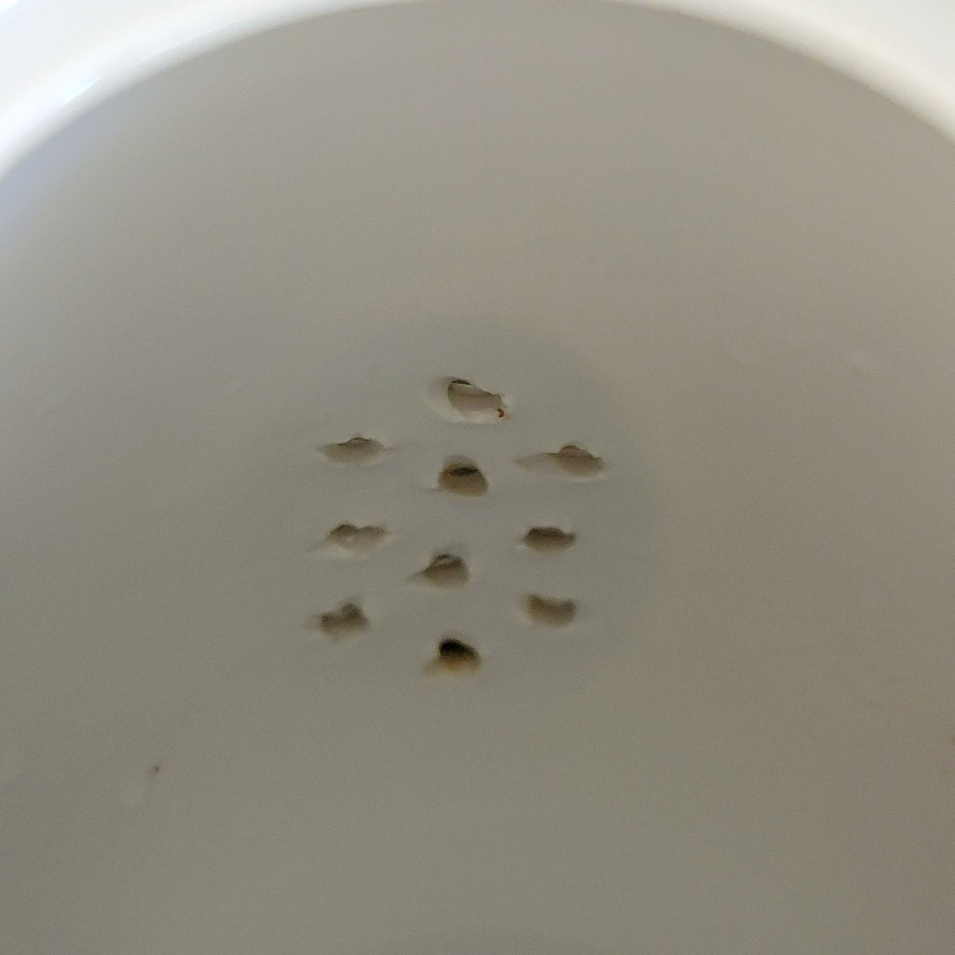 Pot has no cracks, chips or crazing. The pot does rock slightly when first sat down, however does stop once it levels itself out. It is sturdy and won't fall over or tip. It appears to be a flaw in design as there is no cracks or chips that is causing this. There must be a small height difference on once side of the base.