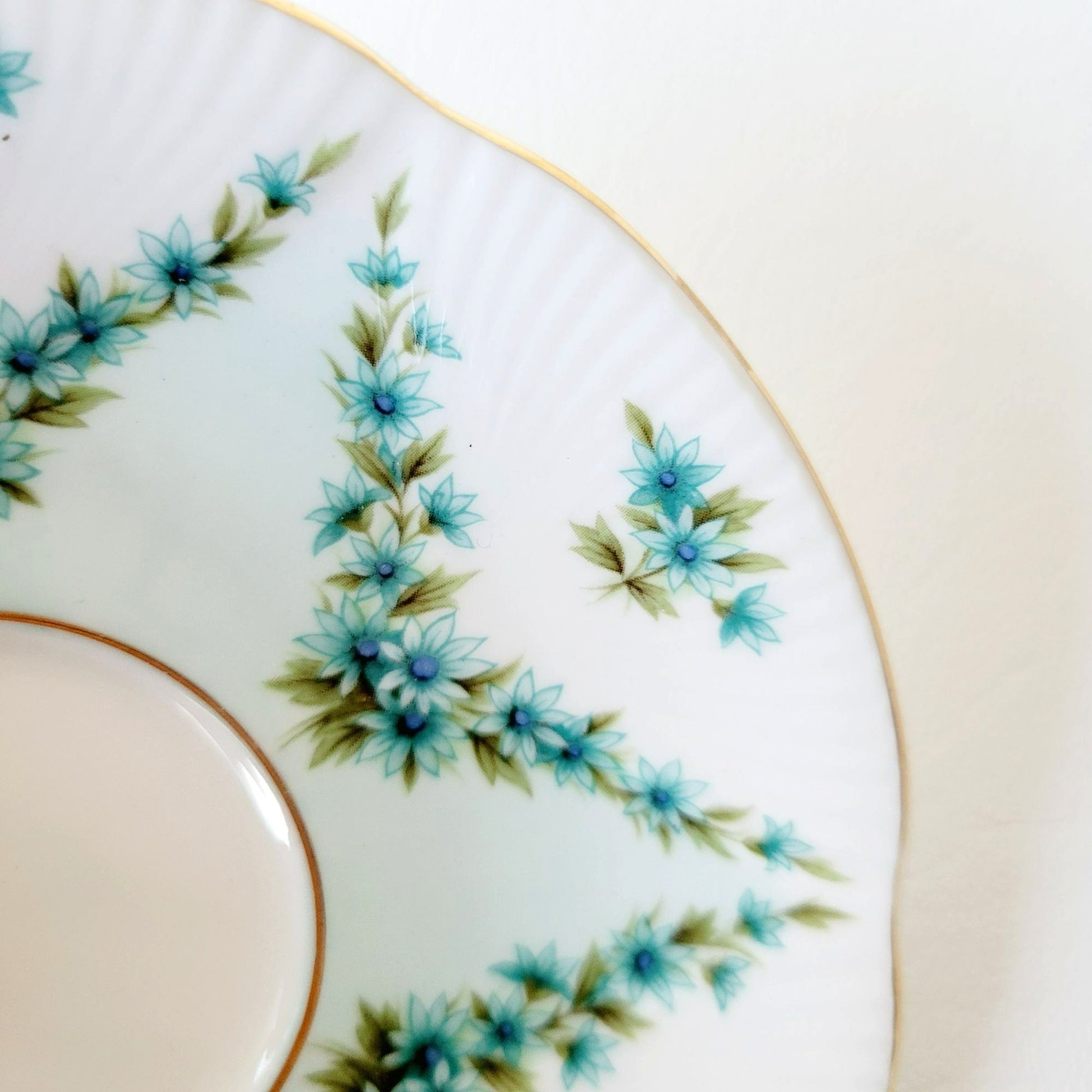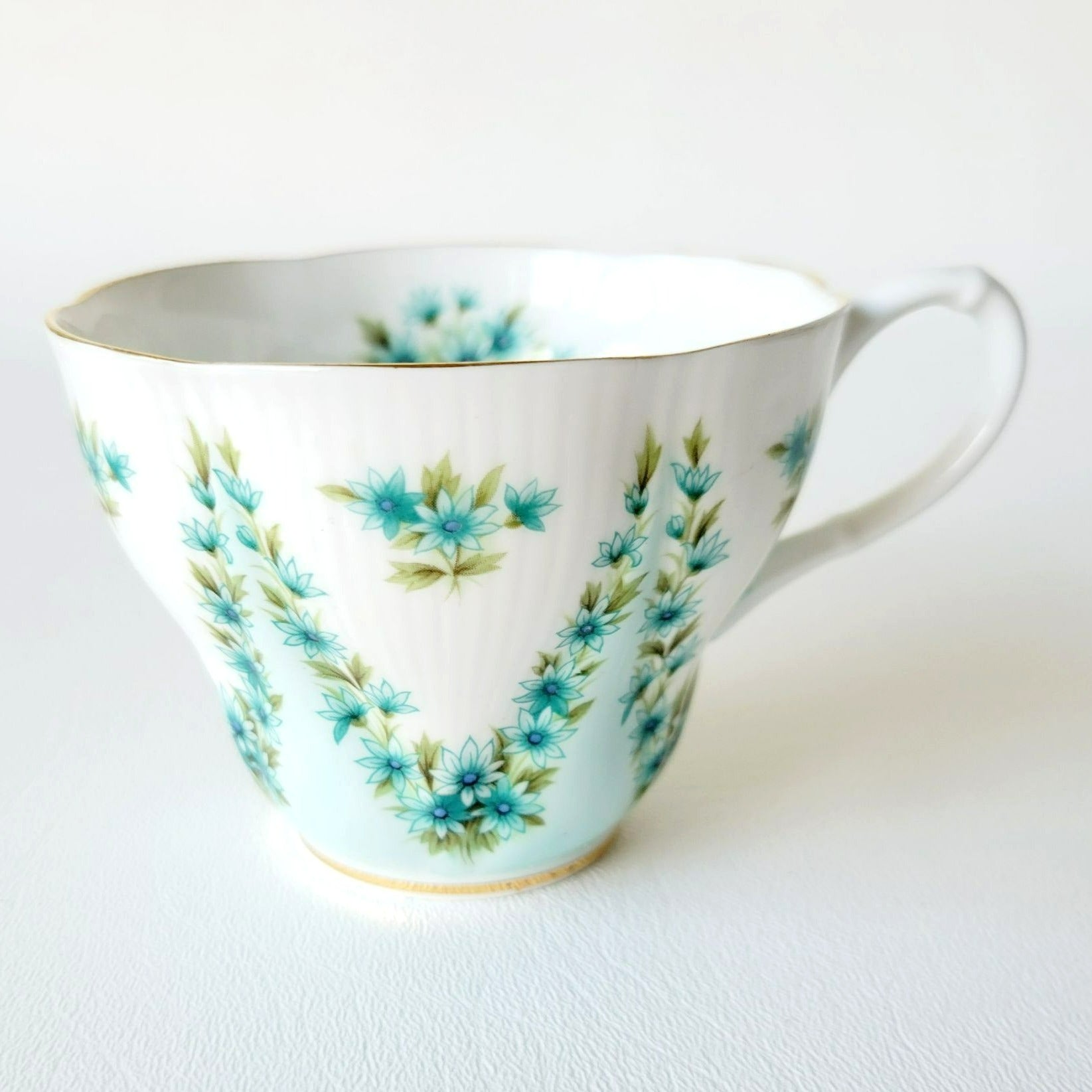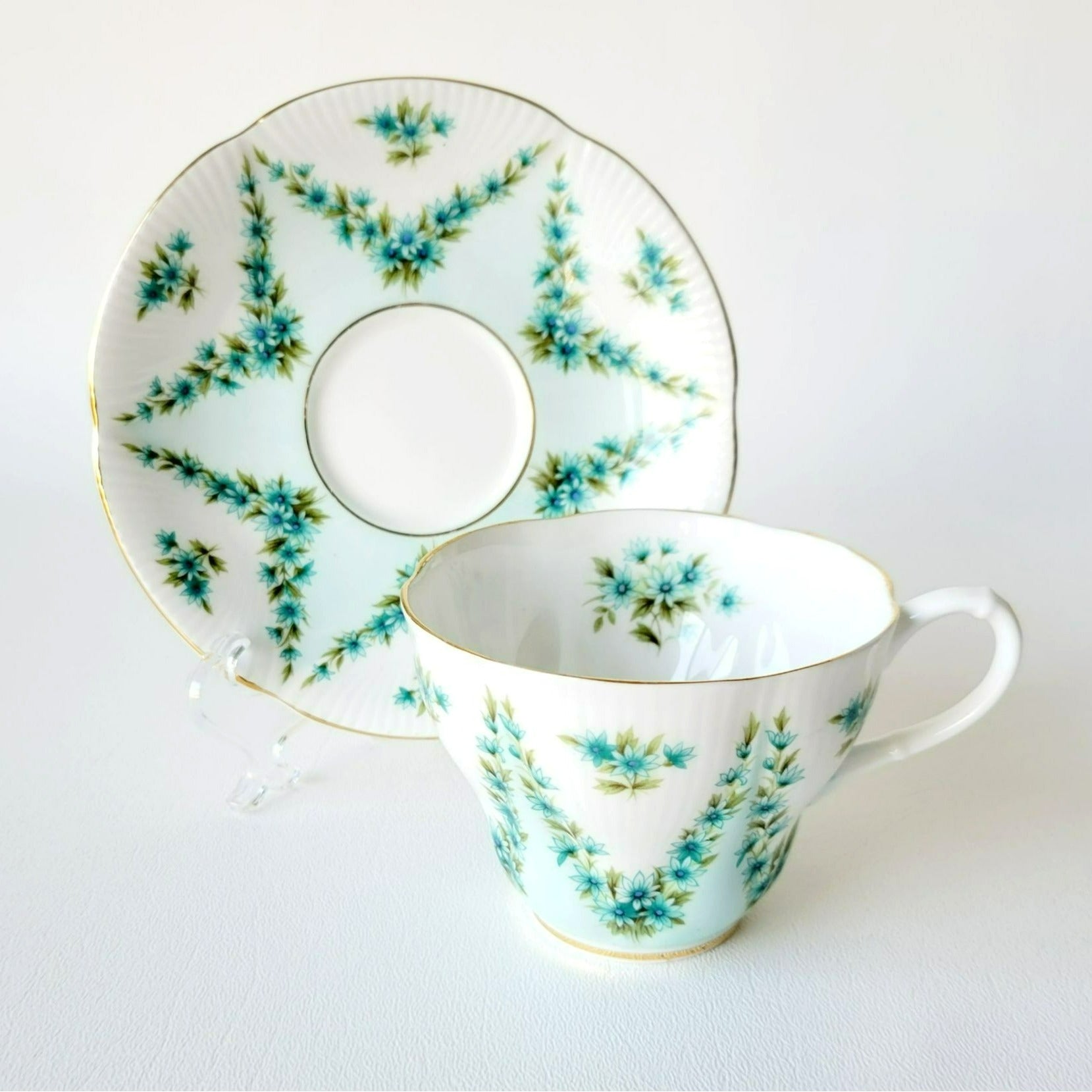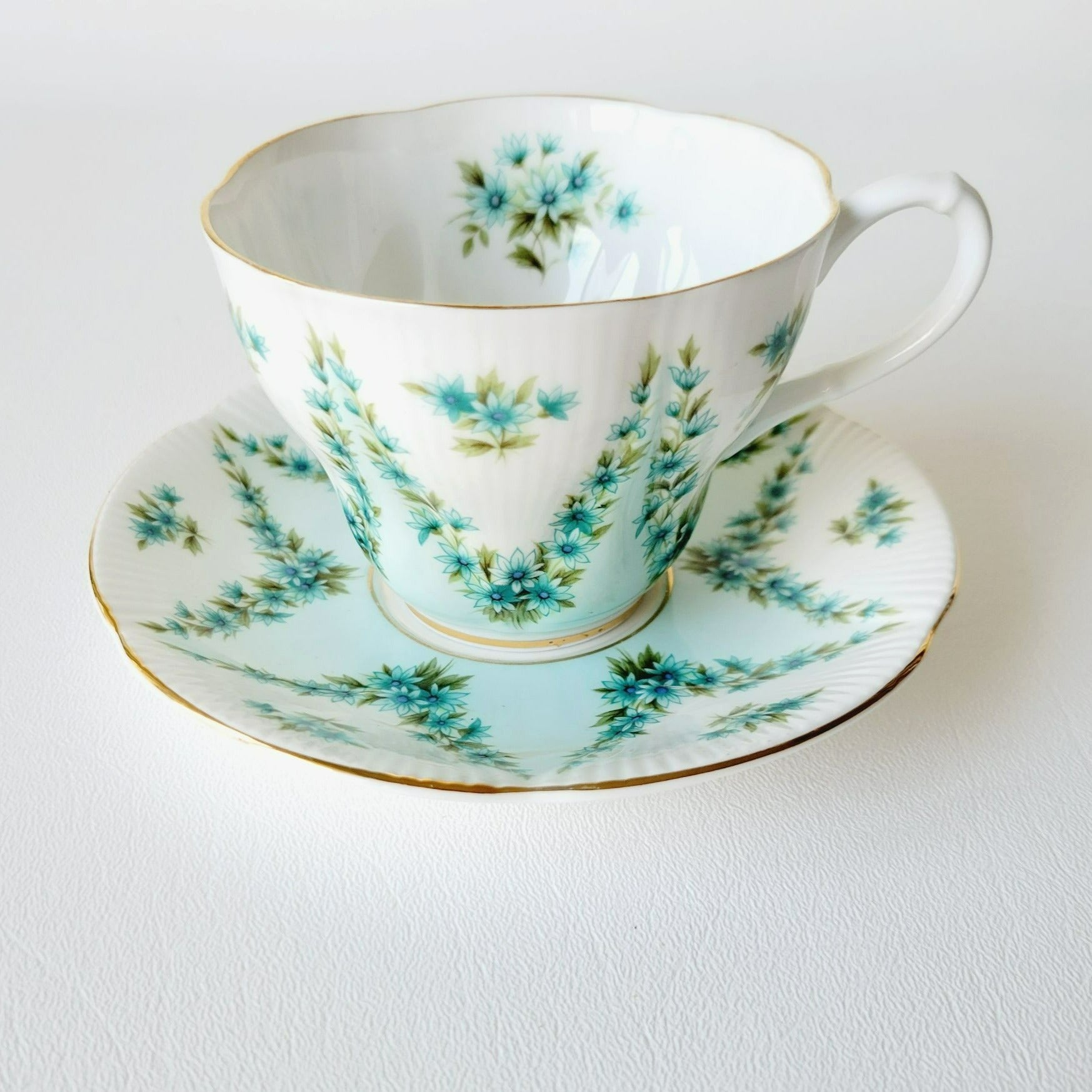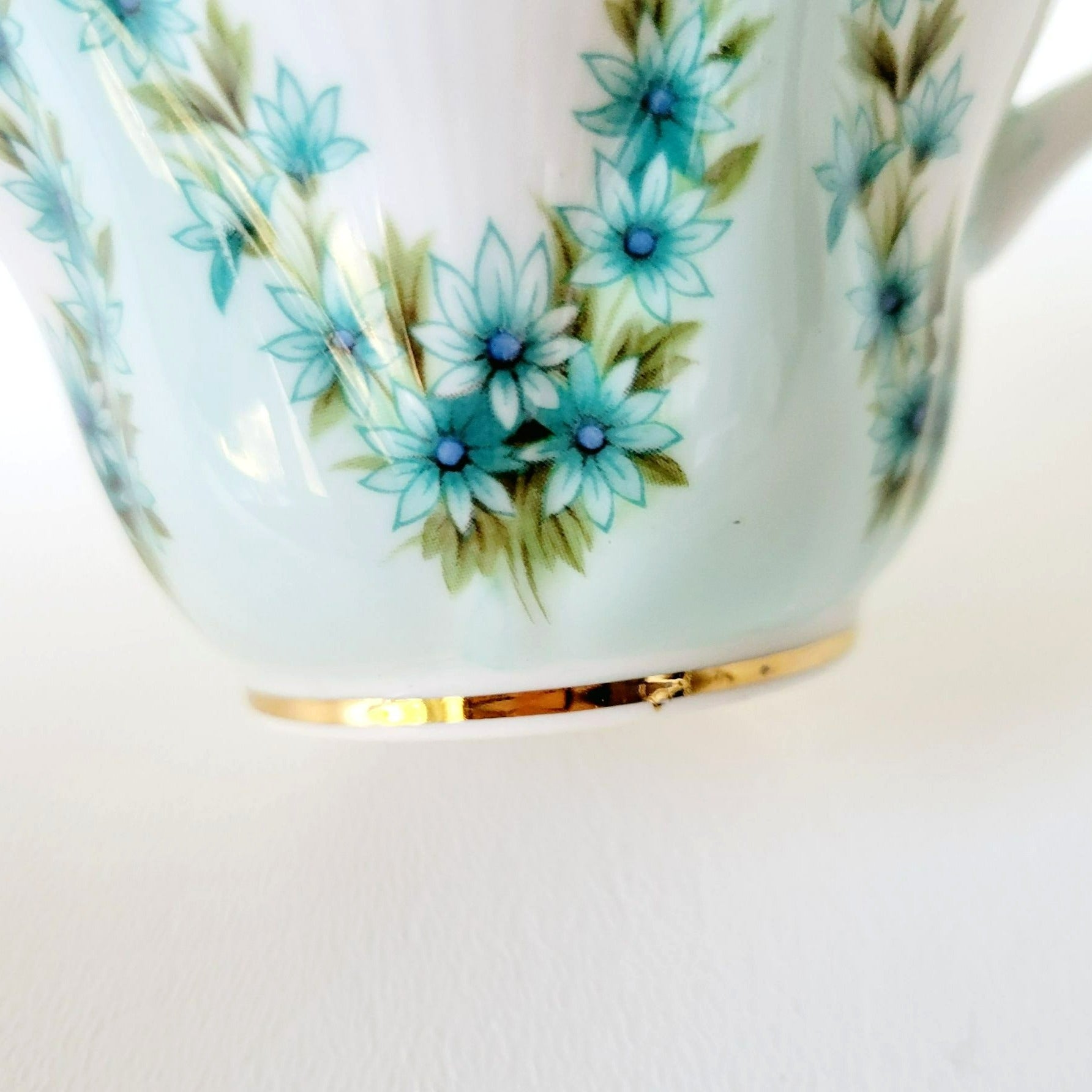 Royal Albert Shot Silk Teacup & Saucer, Blue Green Floral Swag, Embossed & Gold Trim, Made in England
