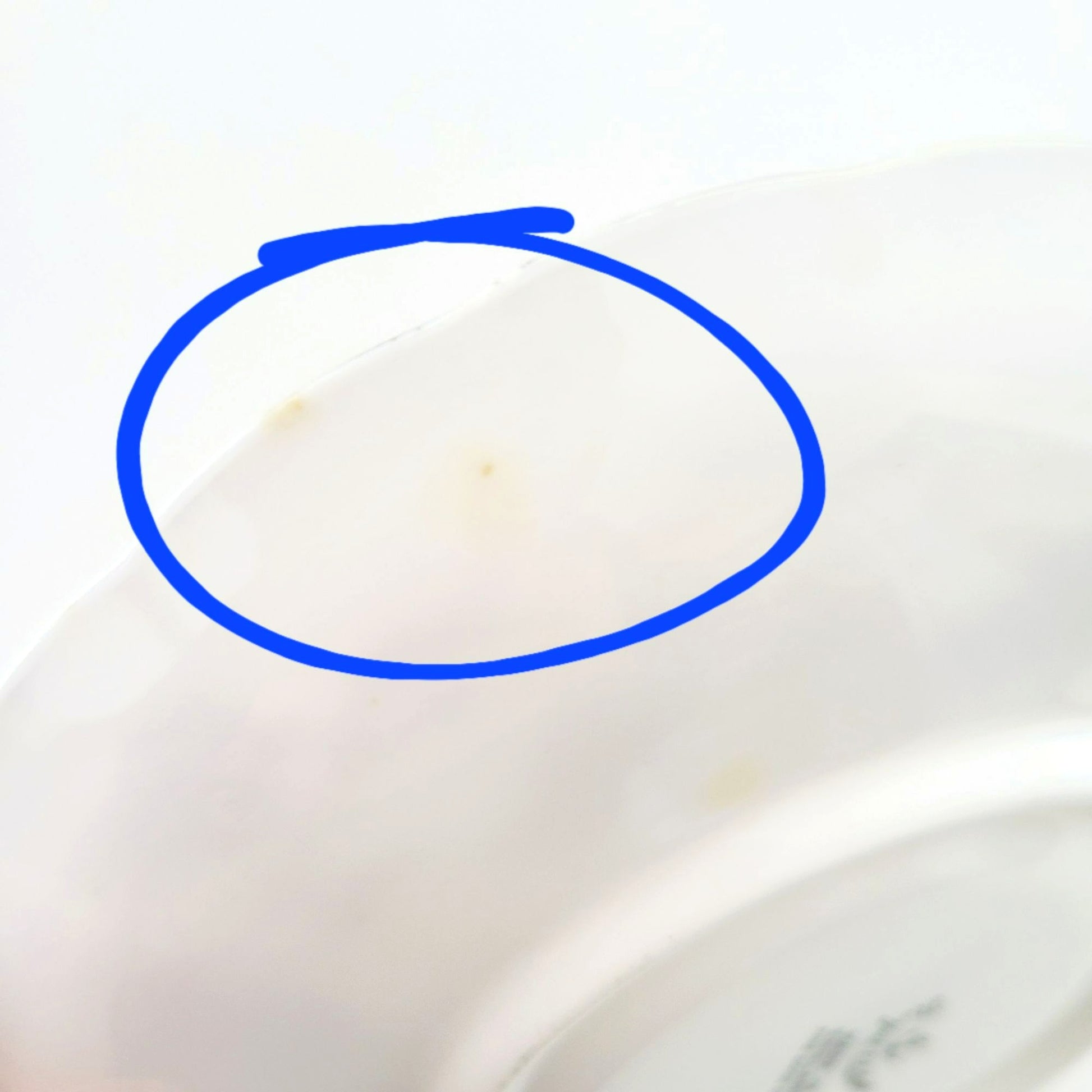 There are no cracks or chips, however there is CRAZING however is very difficult to see, camera was unable to capture it. There are also several dark spots on the bottom of the saucer (see pic).