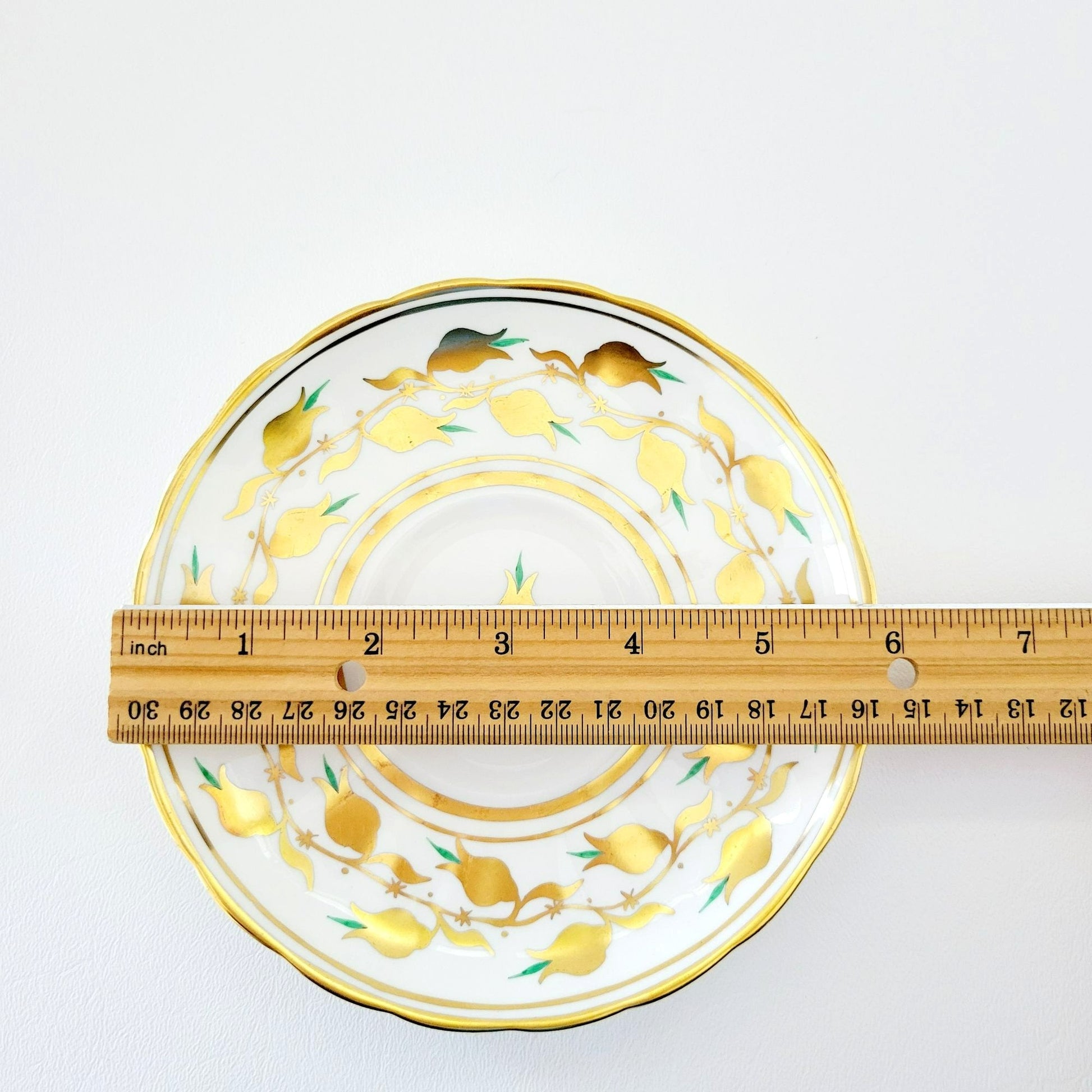 Royal Chelsea Golden Jade Teacup & Saucer with Gold Vines & Flowers, Bone China Made in England