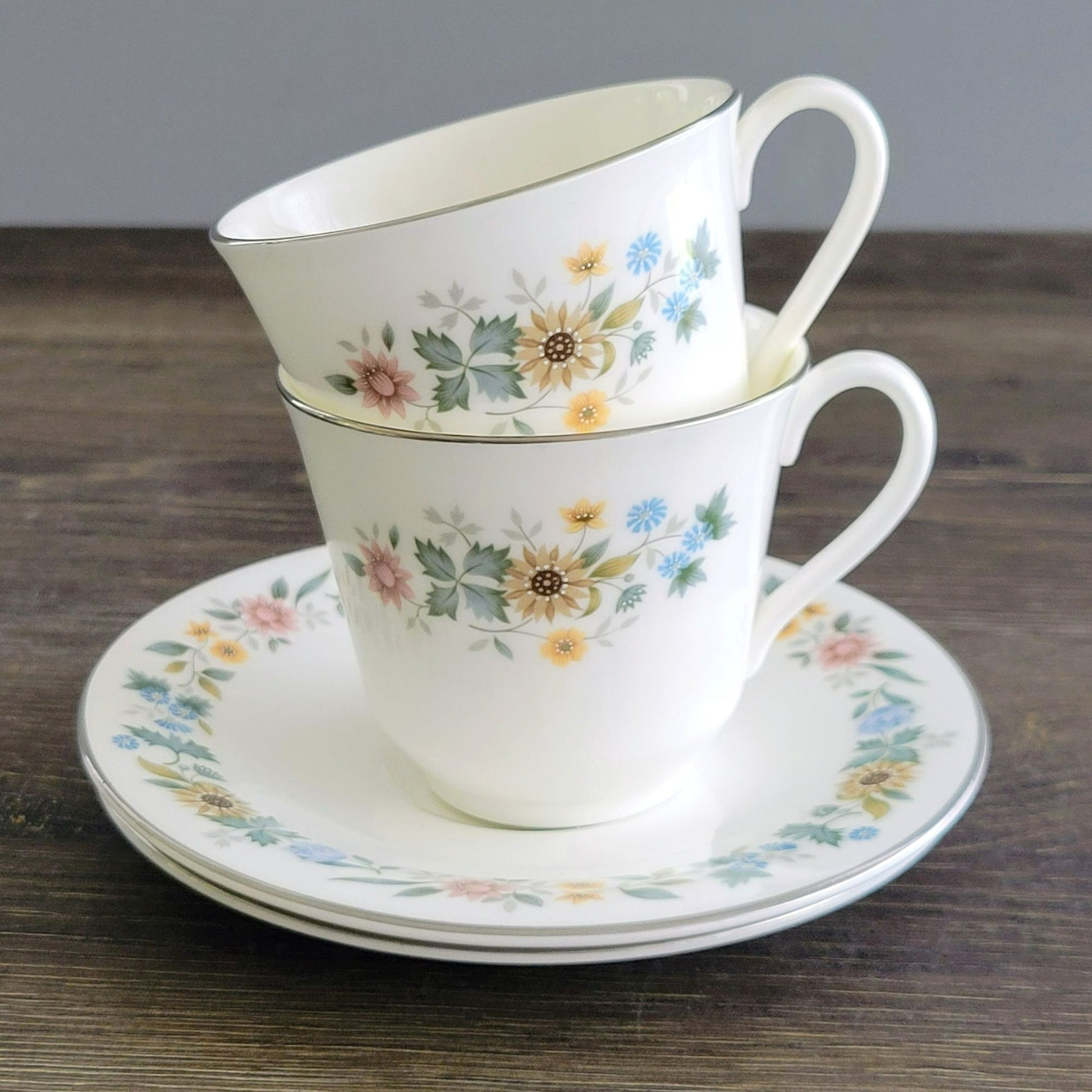 Vintage Royal Doulton Pastorale Teacup & Saucer, 2 Sets, c.1970-90s England