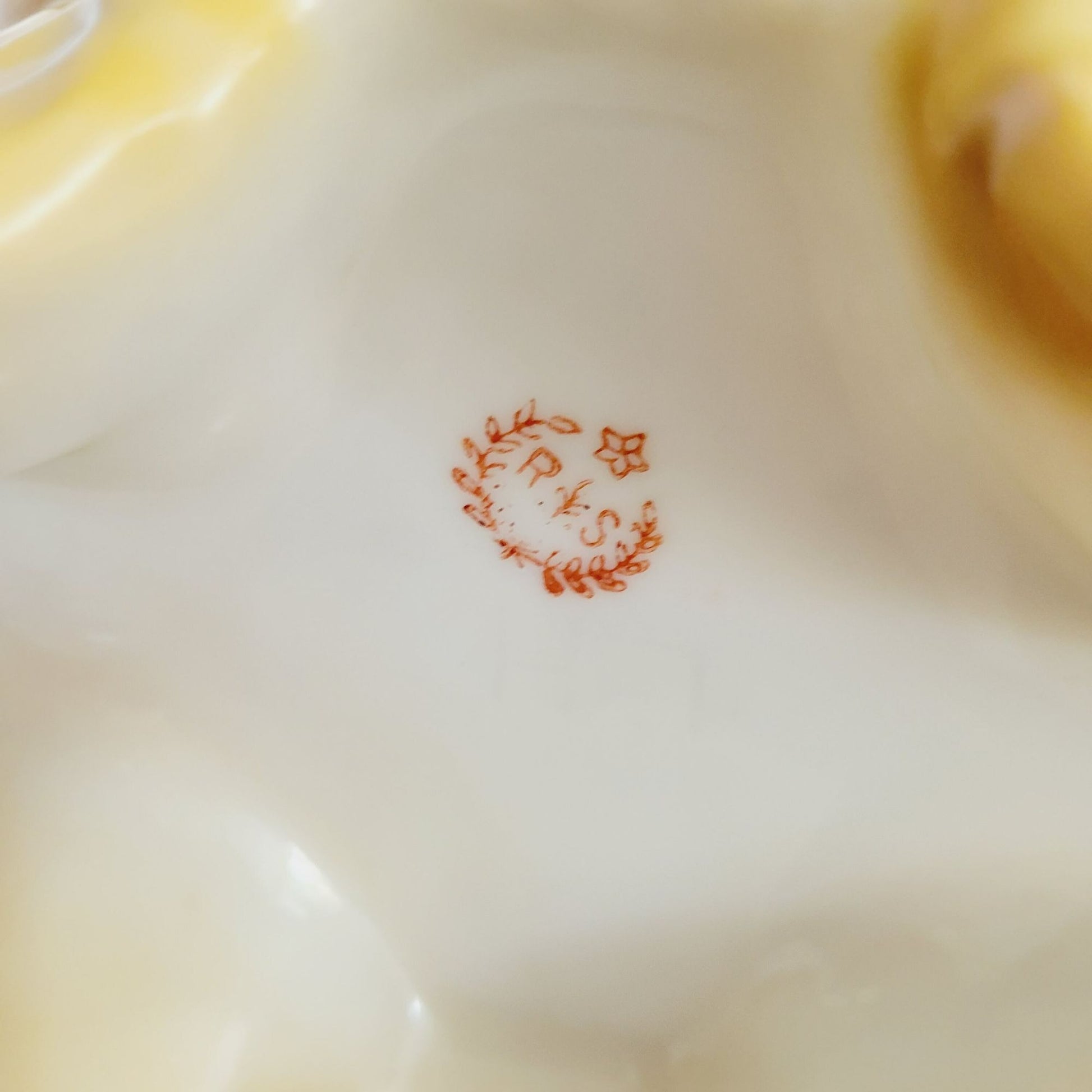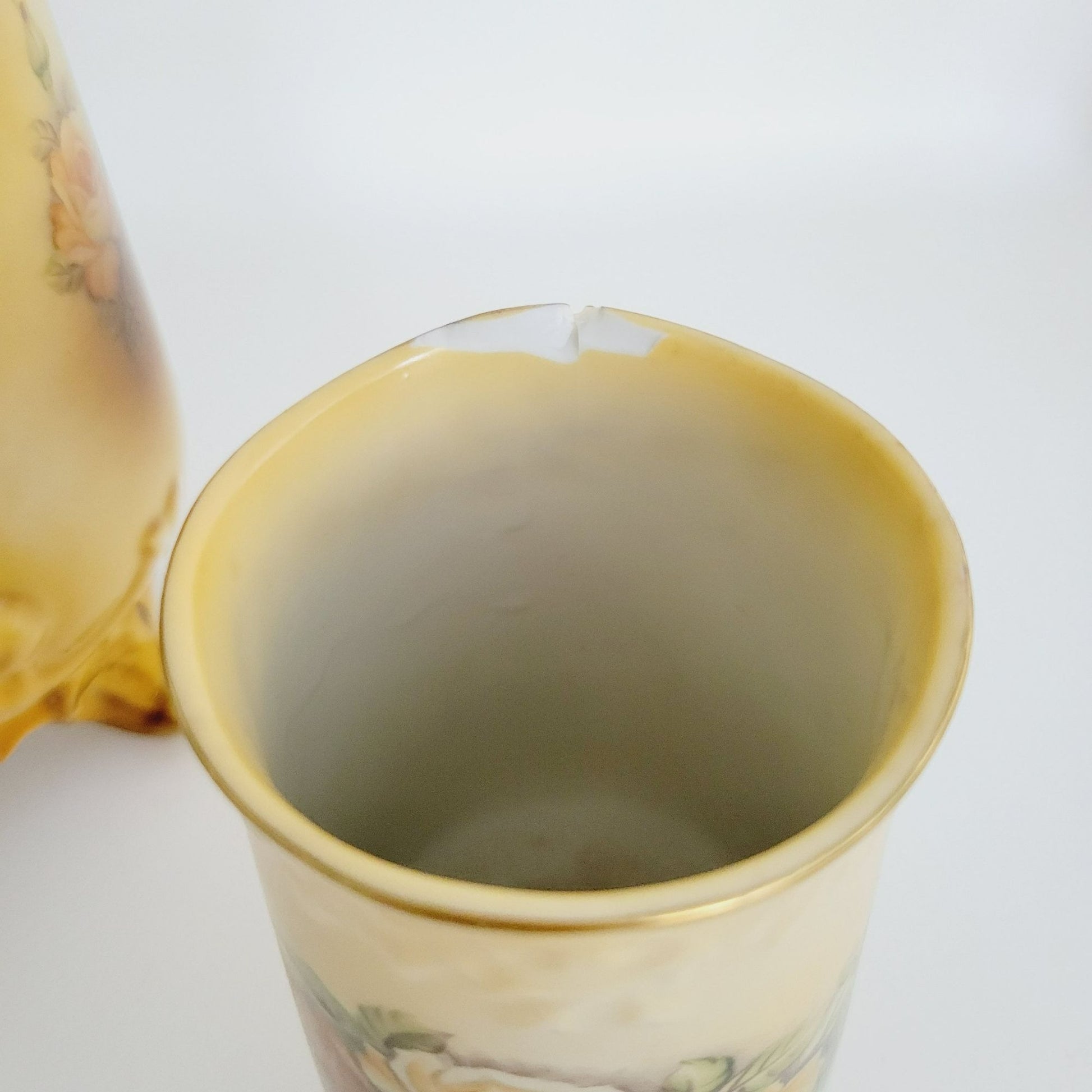 Vintage RS Prussia Victorian Yellow Floral Pitcher & 4 Cups, Footed & Embossed Details, Brown & Green Accents