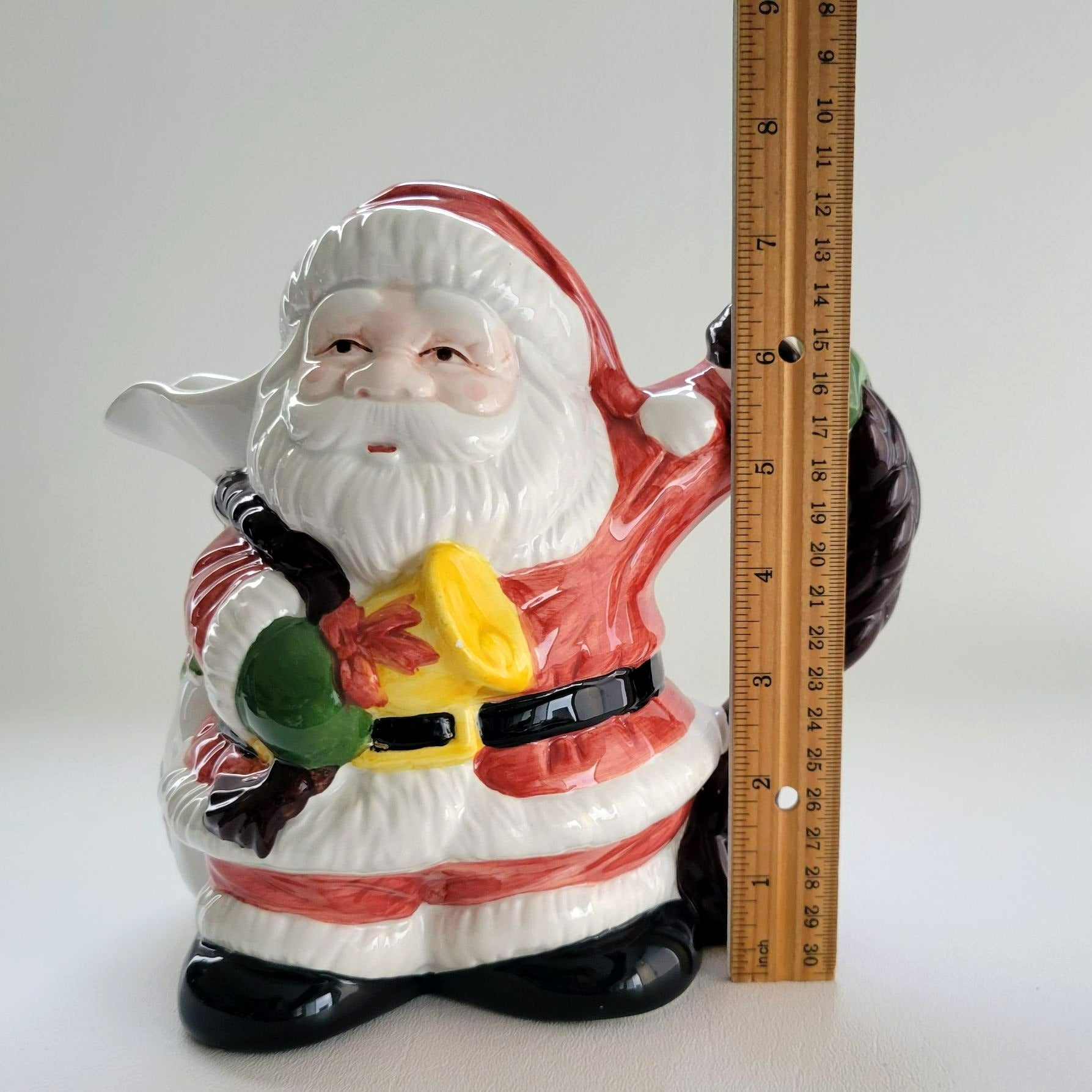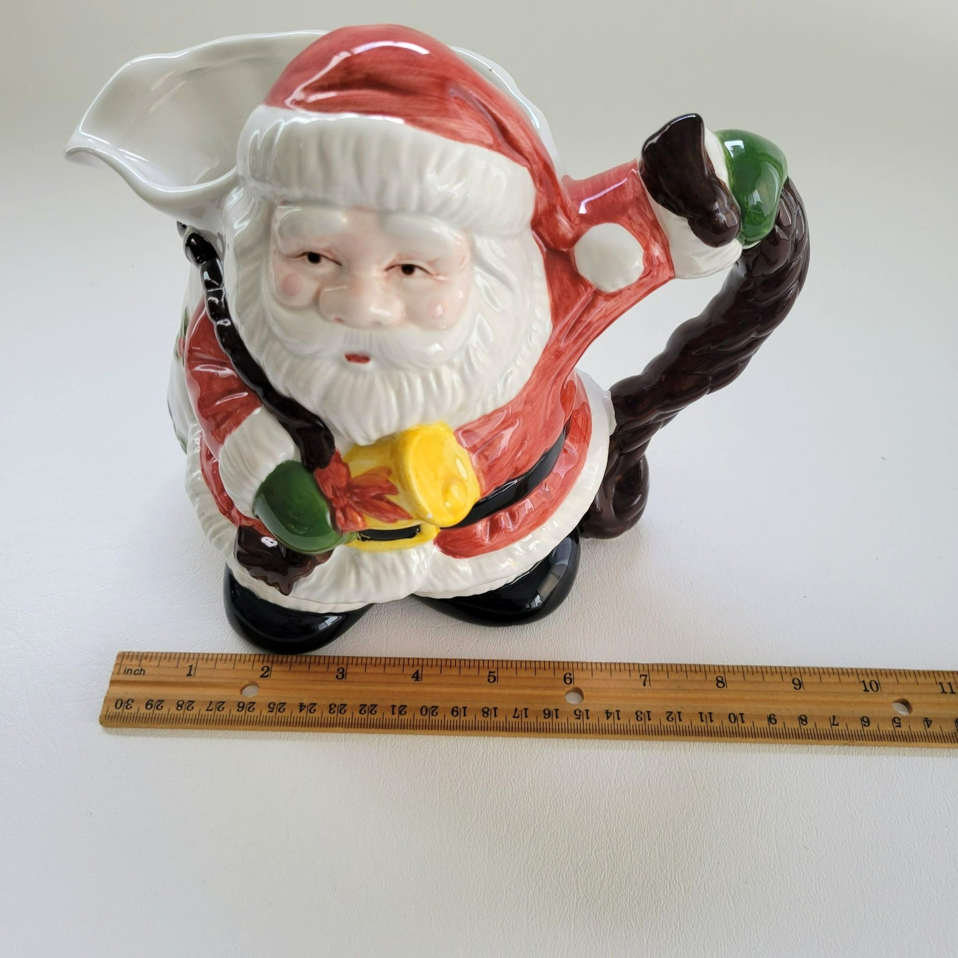 Charming ceramic Santa pitcher with a festive design, featuring a sturdy handle and bright holiday details. Ideal for seasonal use or decoration.