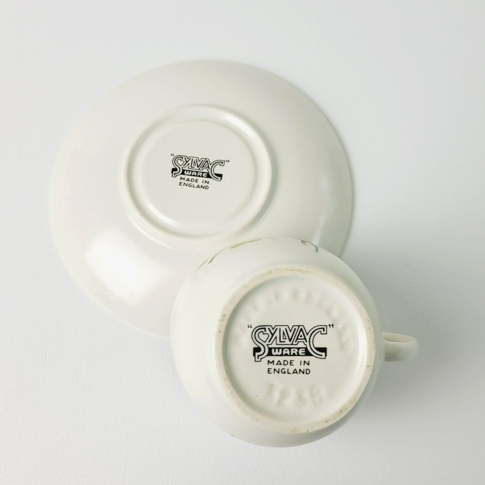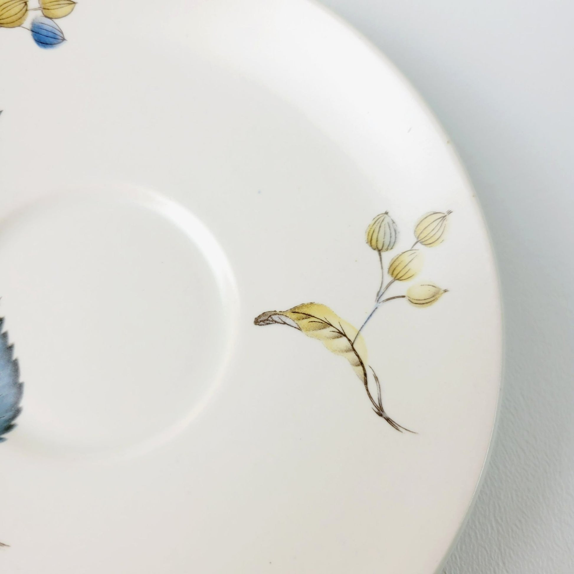 SylvaC Lime Grove Tea Cup & Saucer, 4 Sets, Beige with Blue Leaf & Floral, c.1960s England