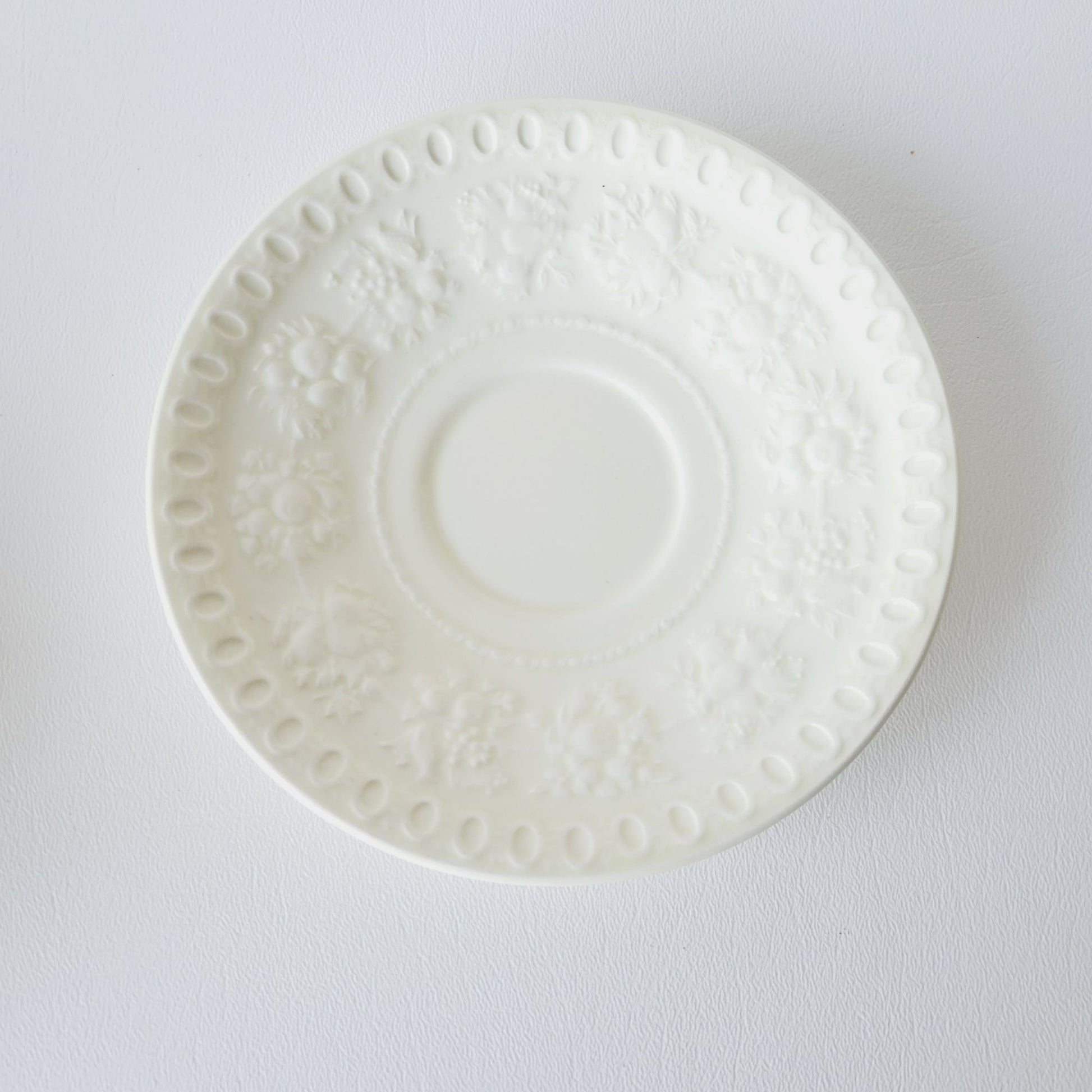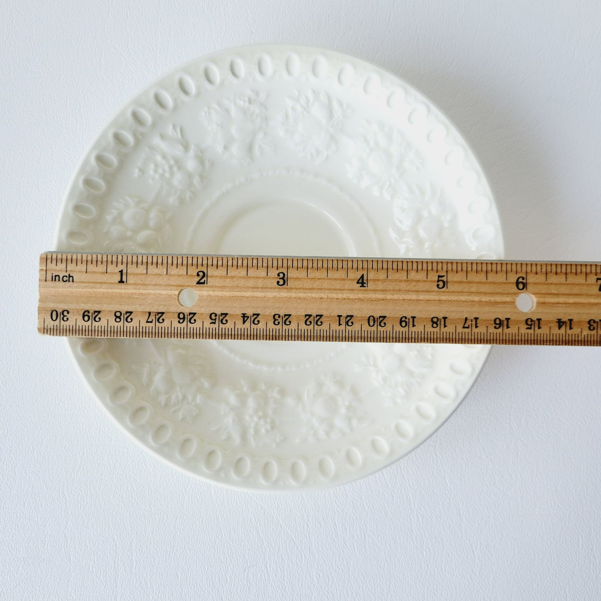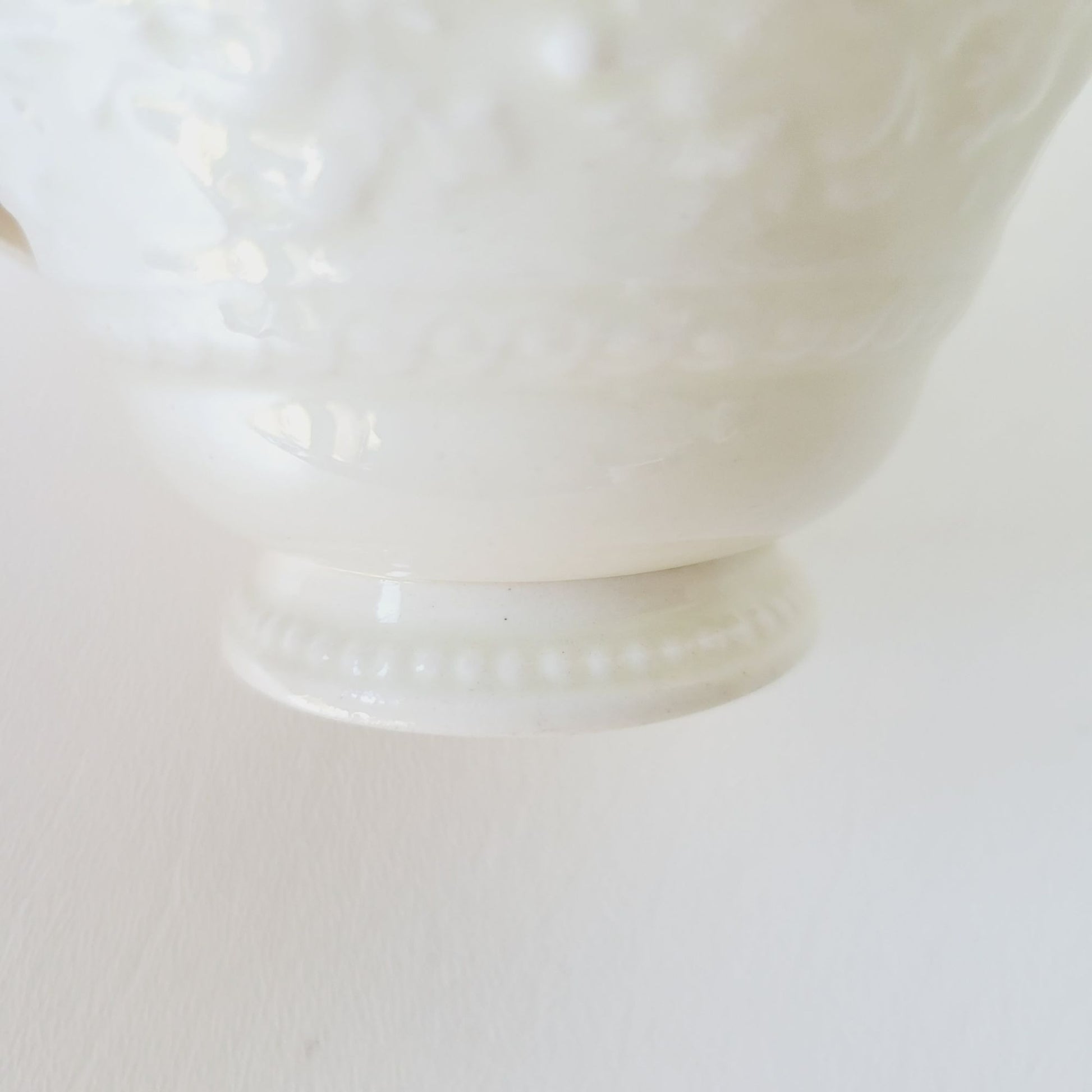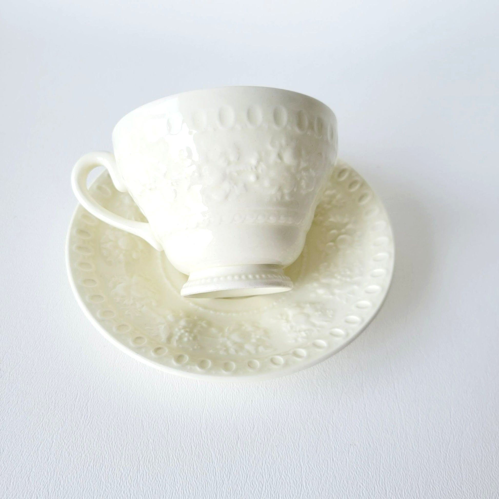 Wedgwood Wellesley Teacup & Saucer, Off White Embossed Floral Design, Made in England