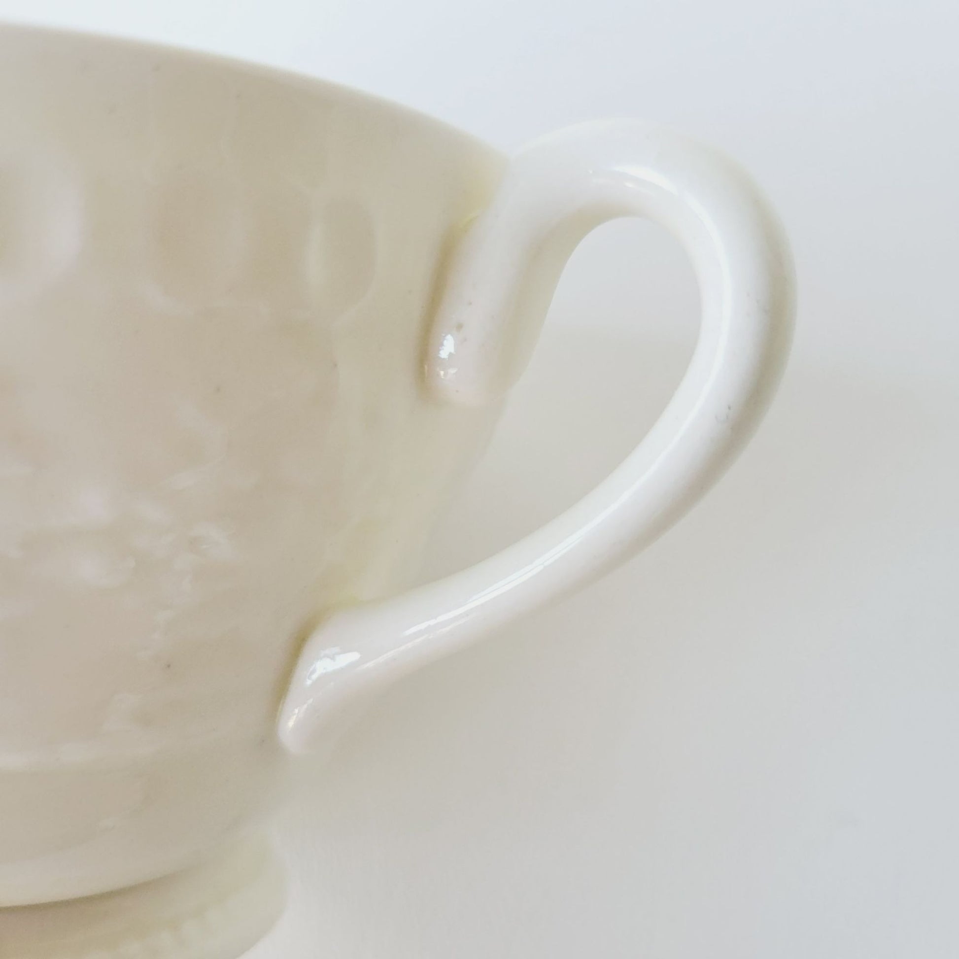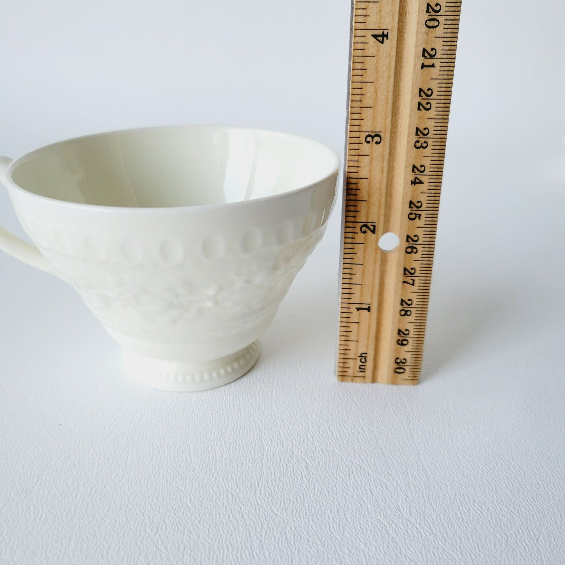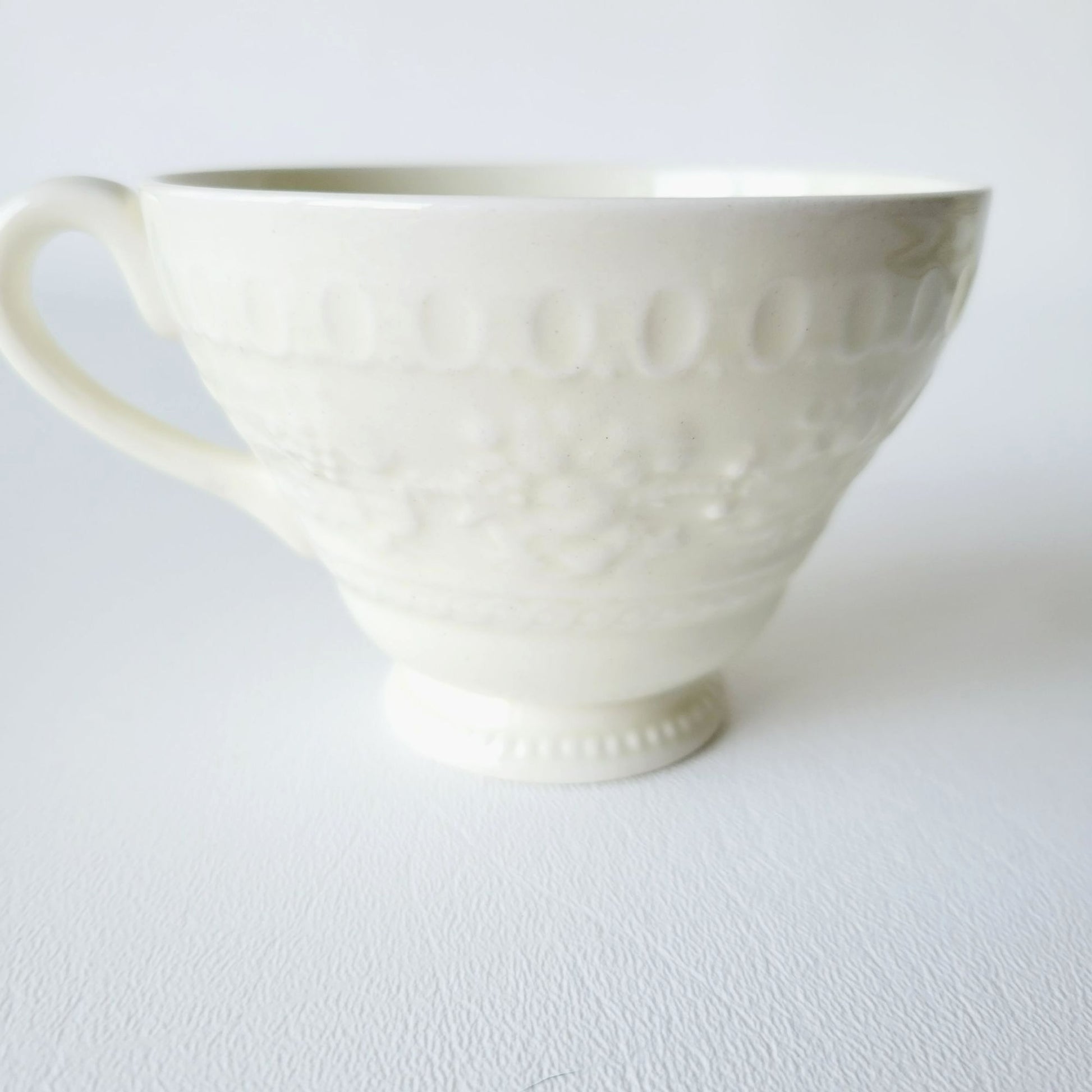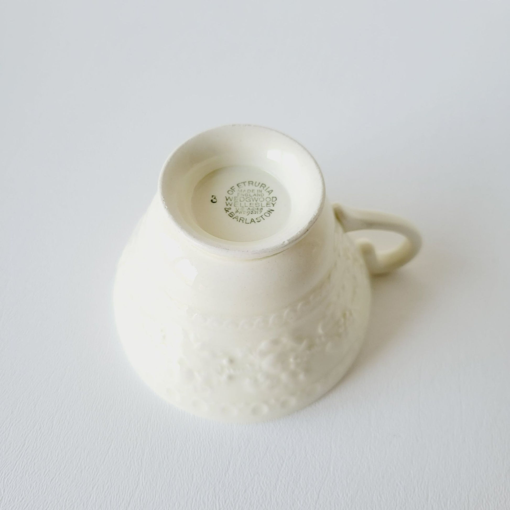 This Wedgwood "Wellesley" Teacup & Saucer set from Etruria and Barlaston, England is a testament to elegant simplicity. Crafted from fine china, the cream-colored teacup and saucer feature an embossed floral design.
