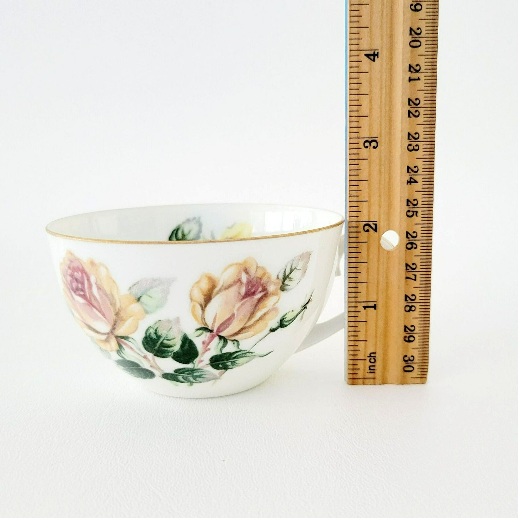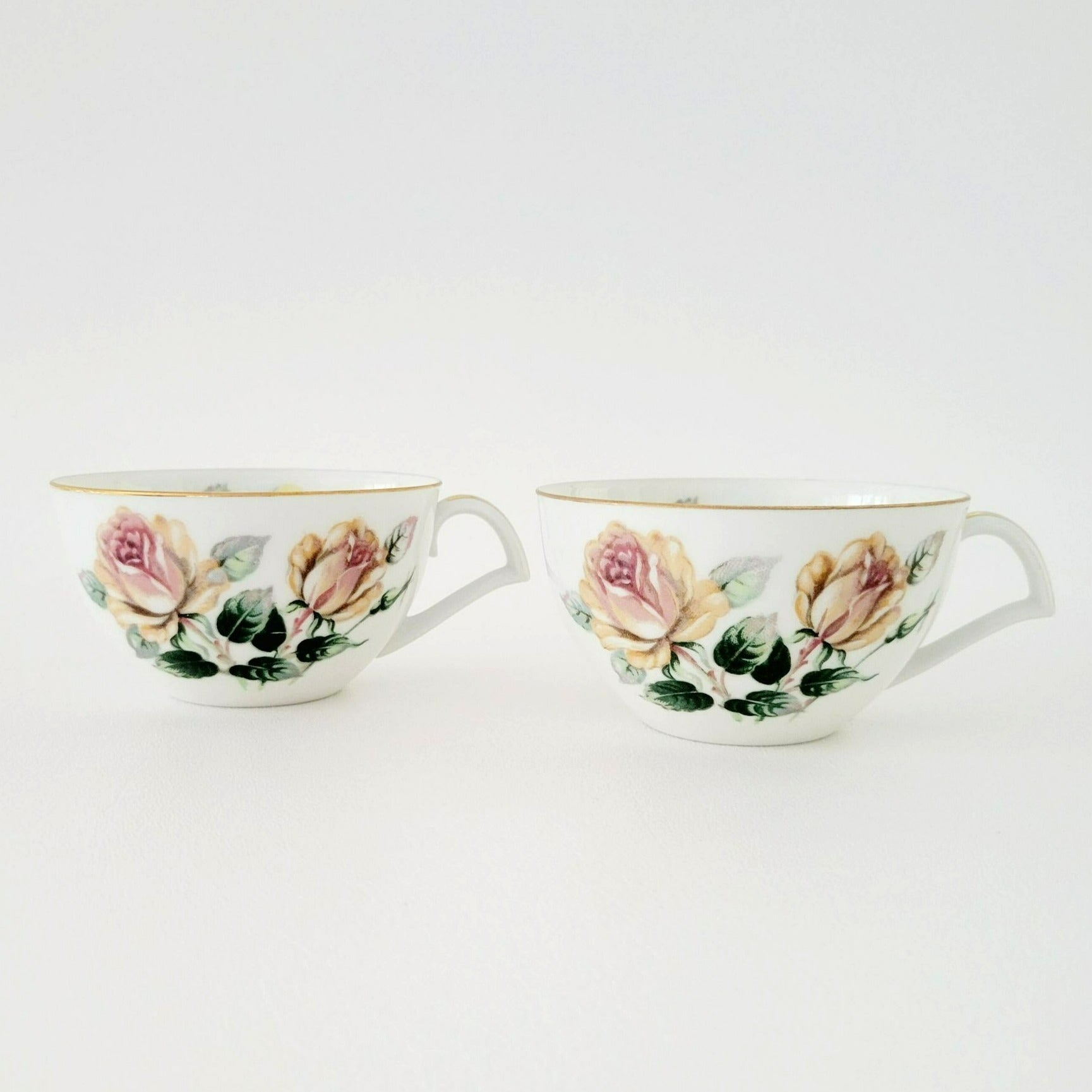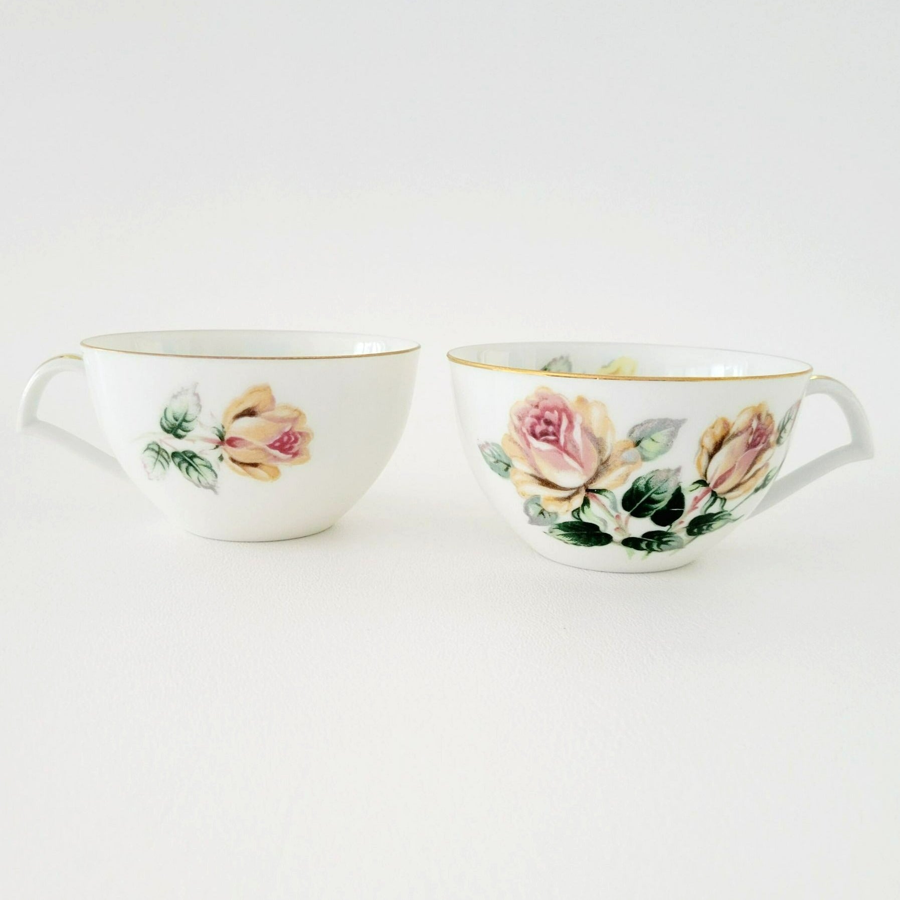Vintage Yellow & Peach Rose Teacup Set of 2, by Narumi Kent Trio Pattern, Made in Japan