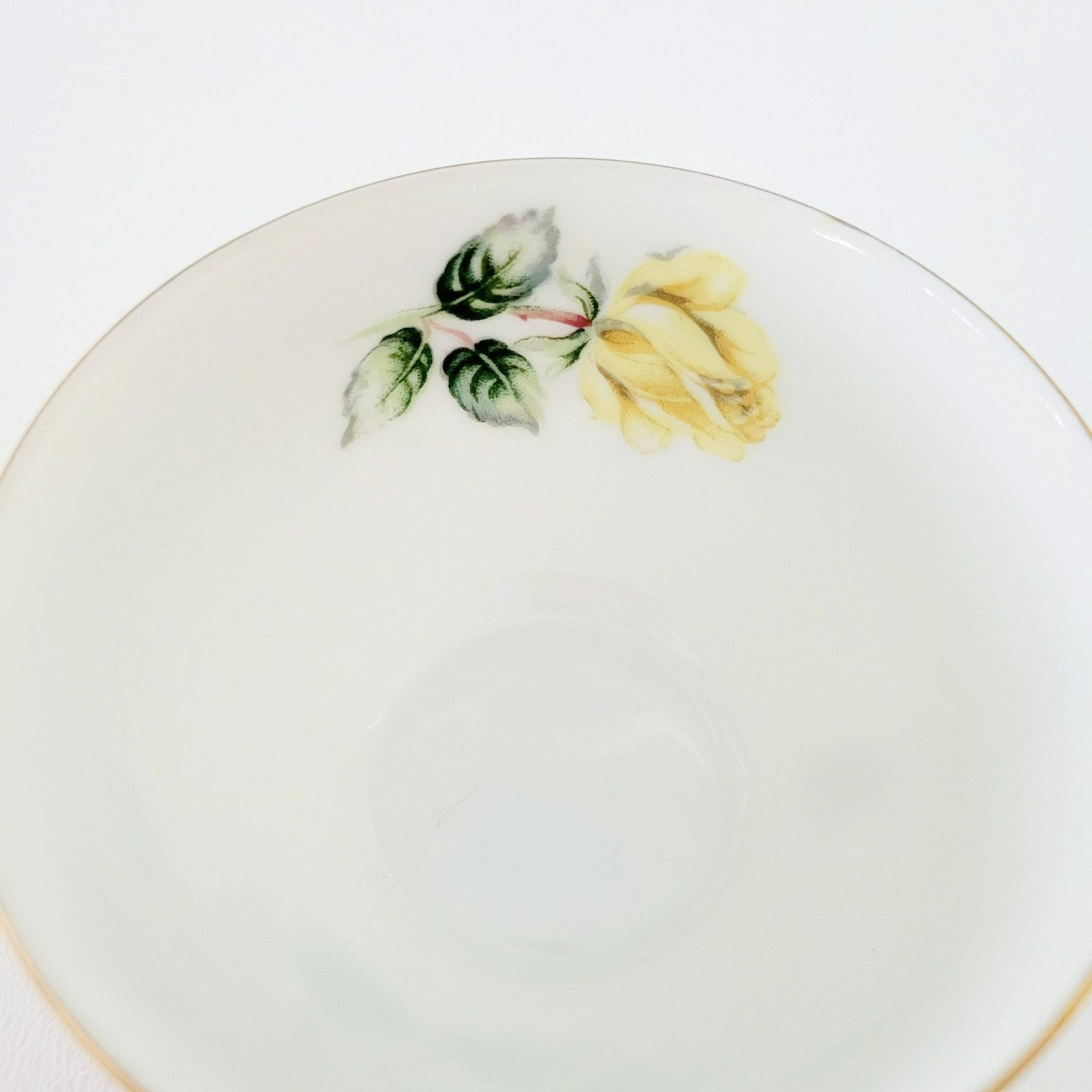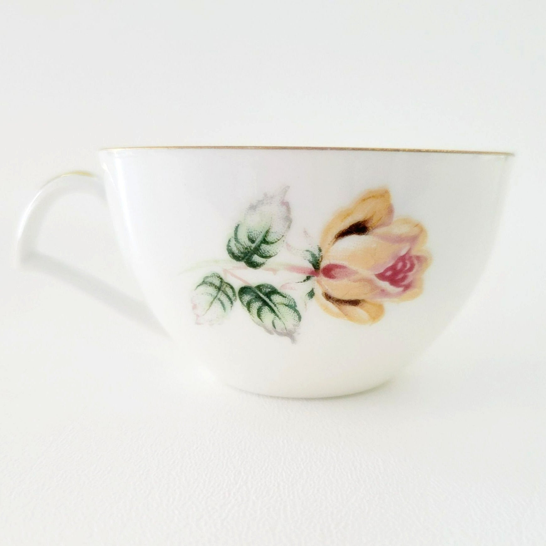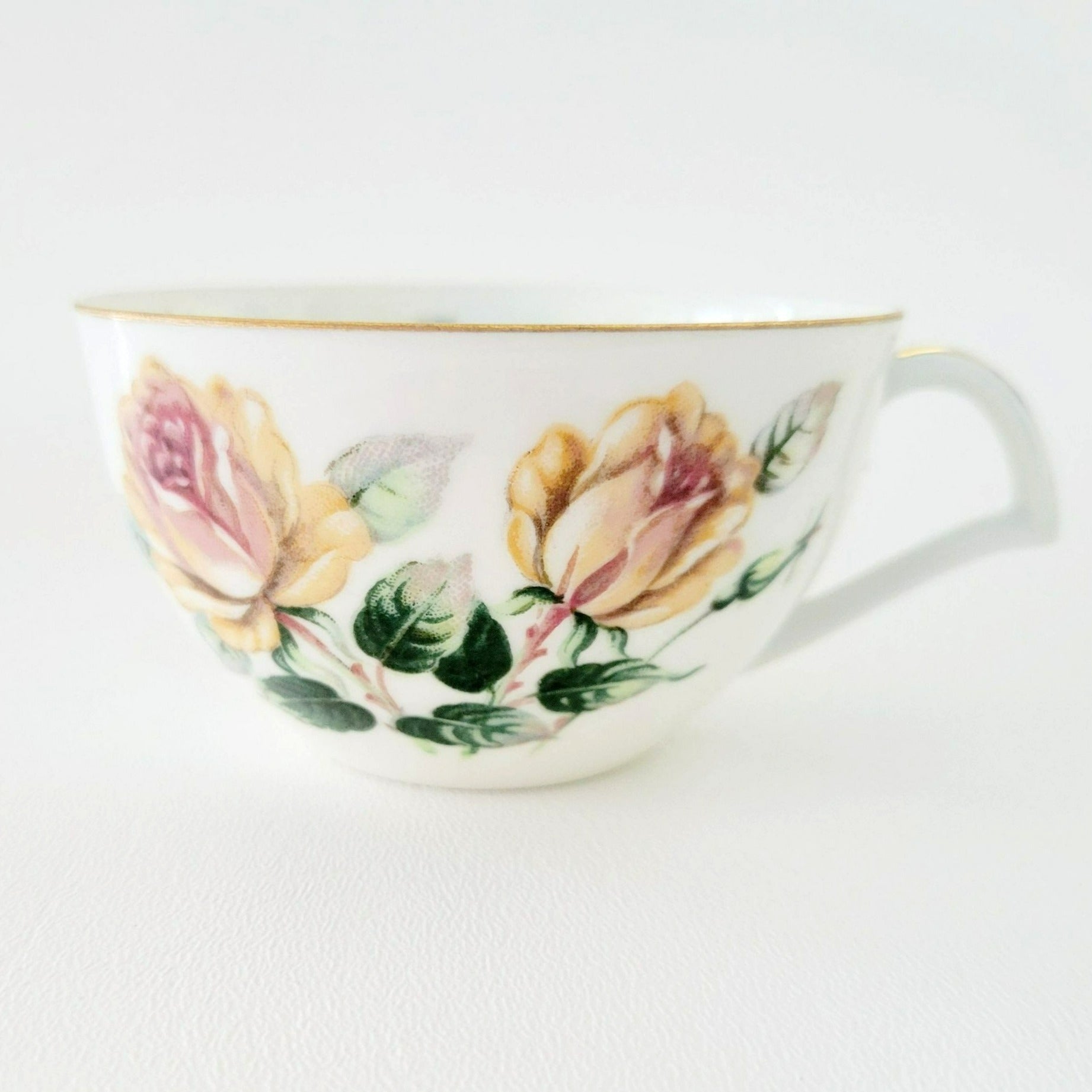 This Vintage Narumi Kent Yellow Rose Teacups set, made in Japan, adds a touch of elegance to your tea time. The trio pattern, gold trim and delicate rose design in hues of yellow, peach, and pink make it perfect for a garden tea party.