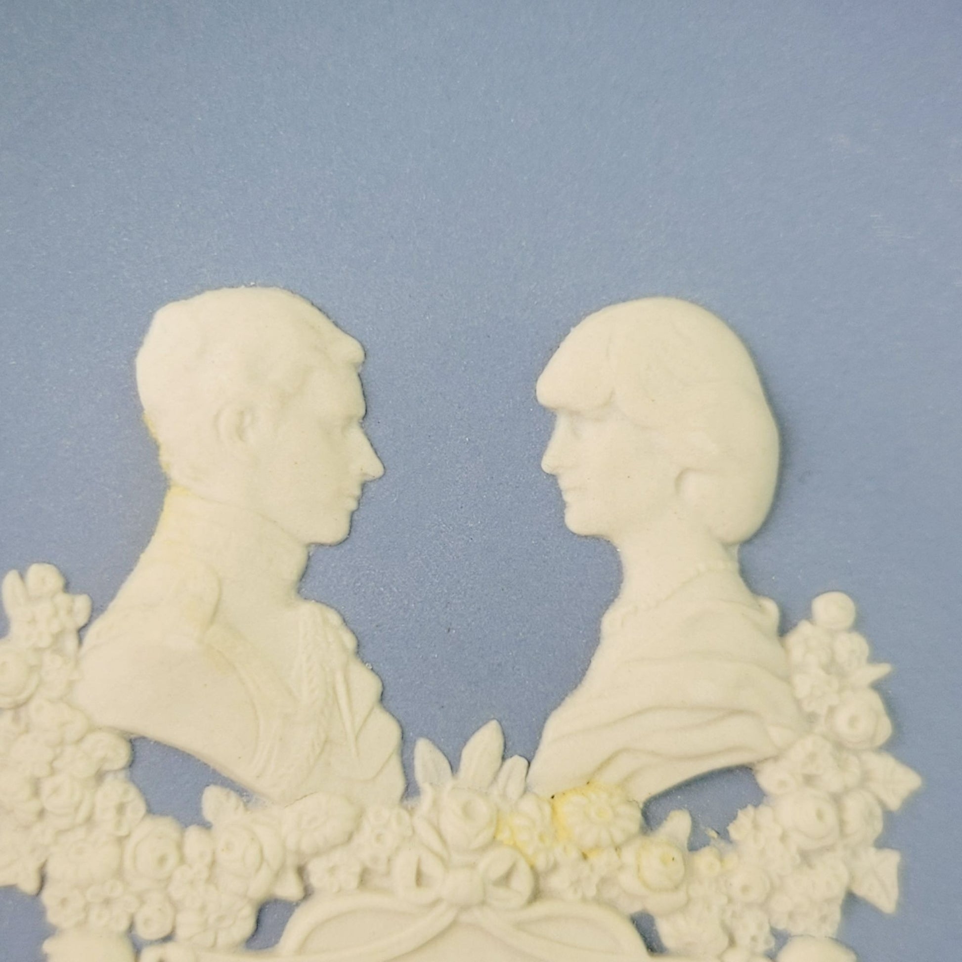 Wedgwood Blue Jasperware Royal Birth 1984 Miniature Plate, Embossed Diana & Charles