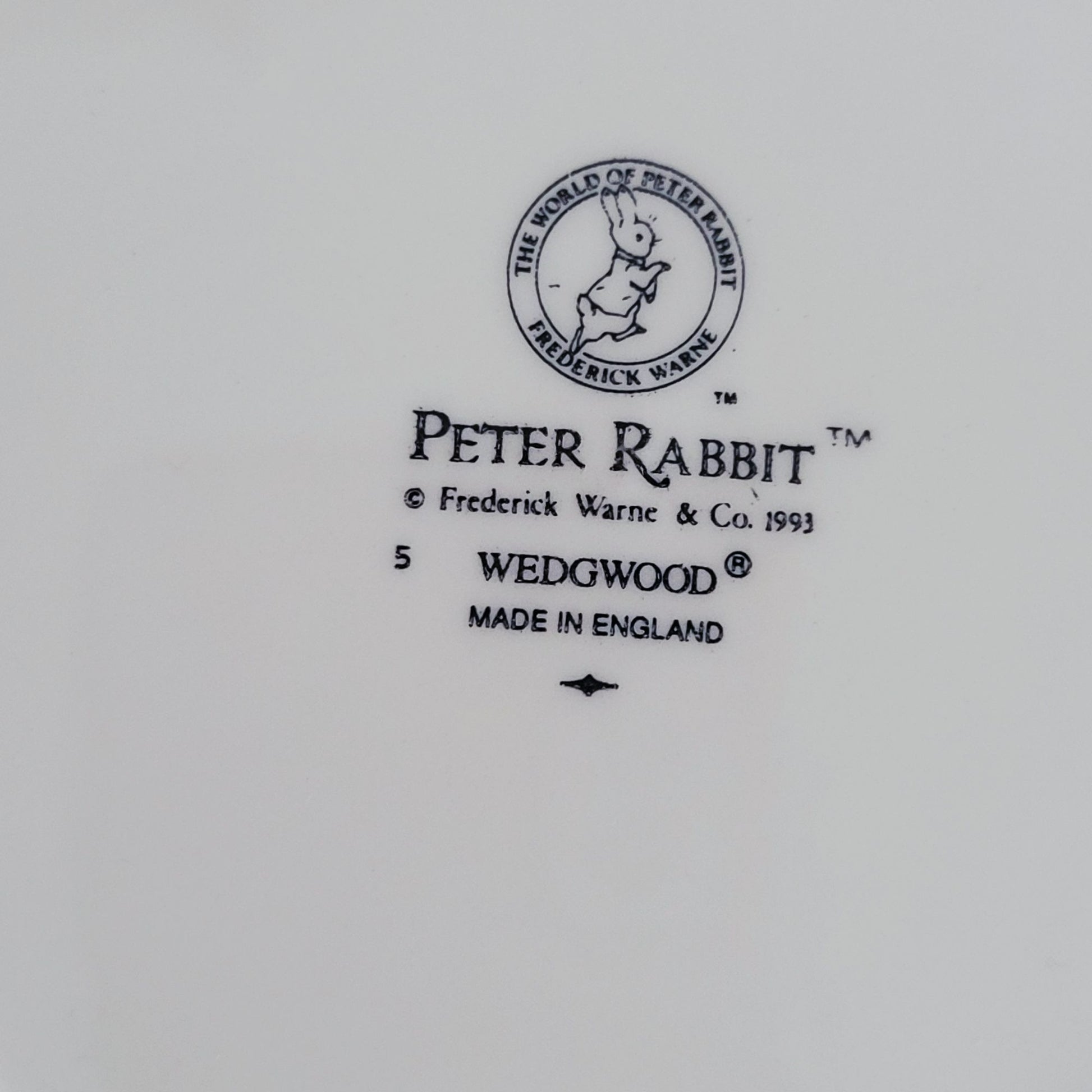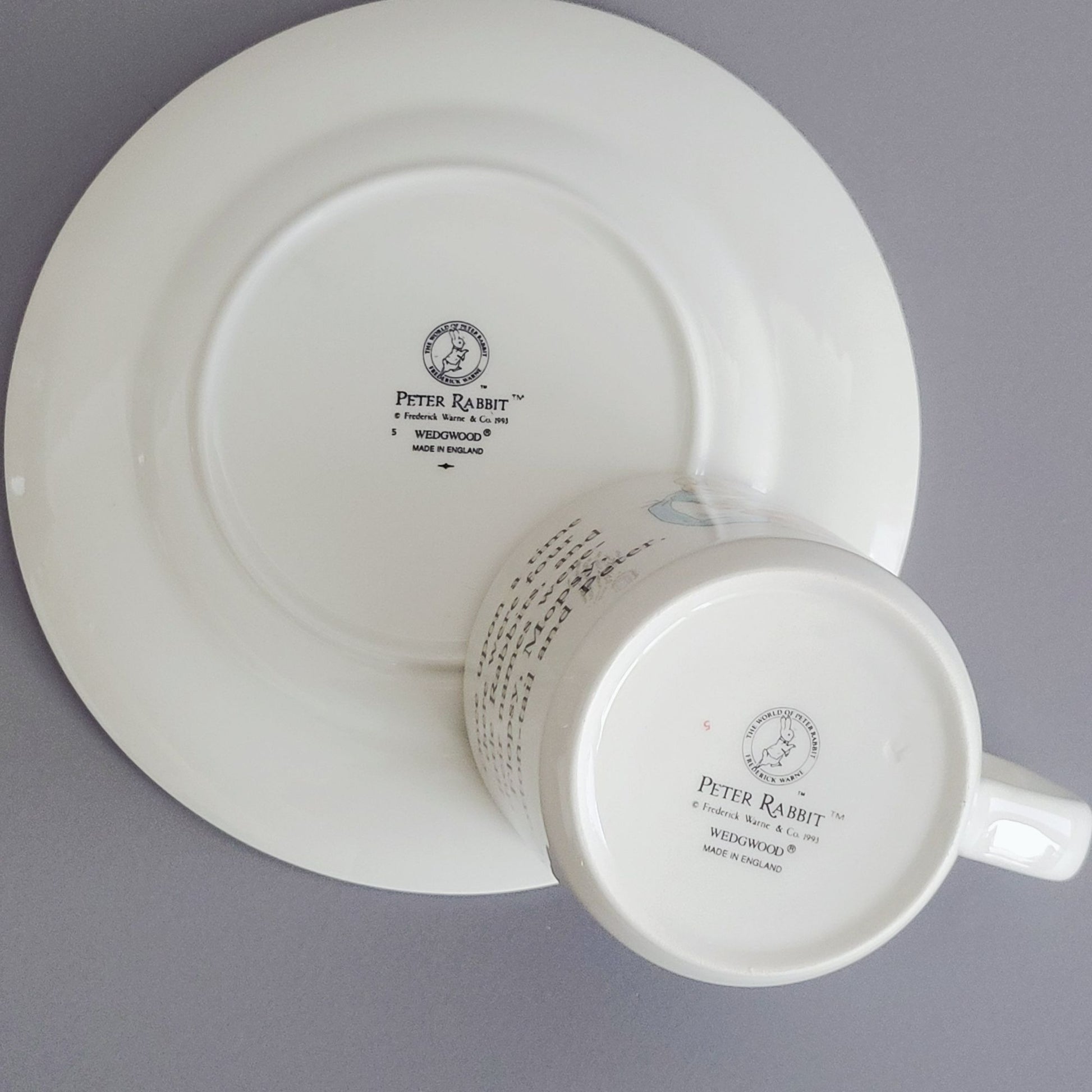Perfect for collectors and fans of Beatrix Potter, this Wedgwood Peter Rabbit Bread Plate & Cup Set, made in England, features charming illustrations from the beloved children's stories.