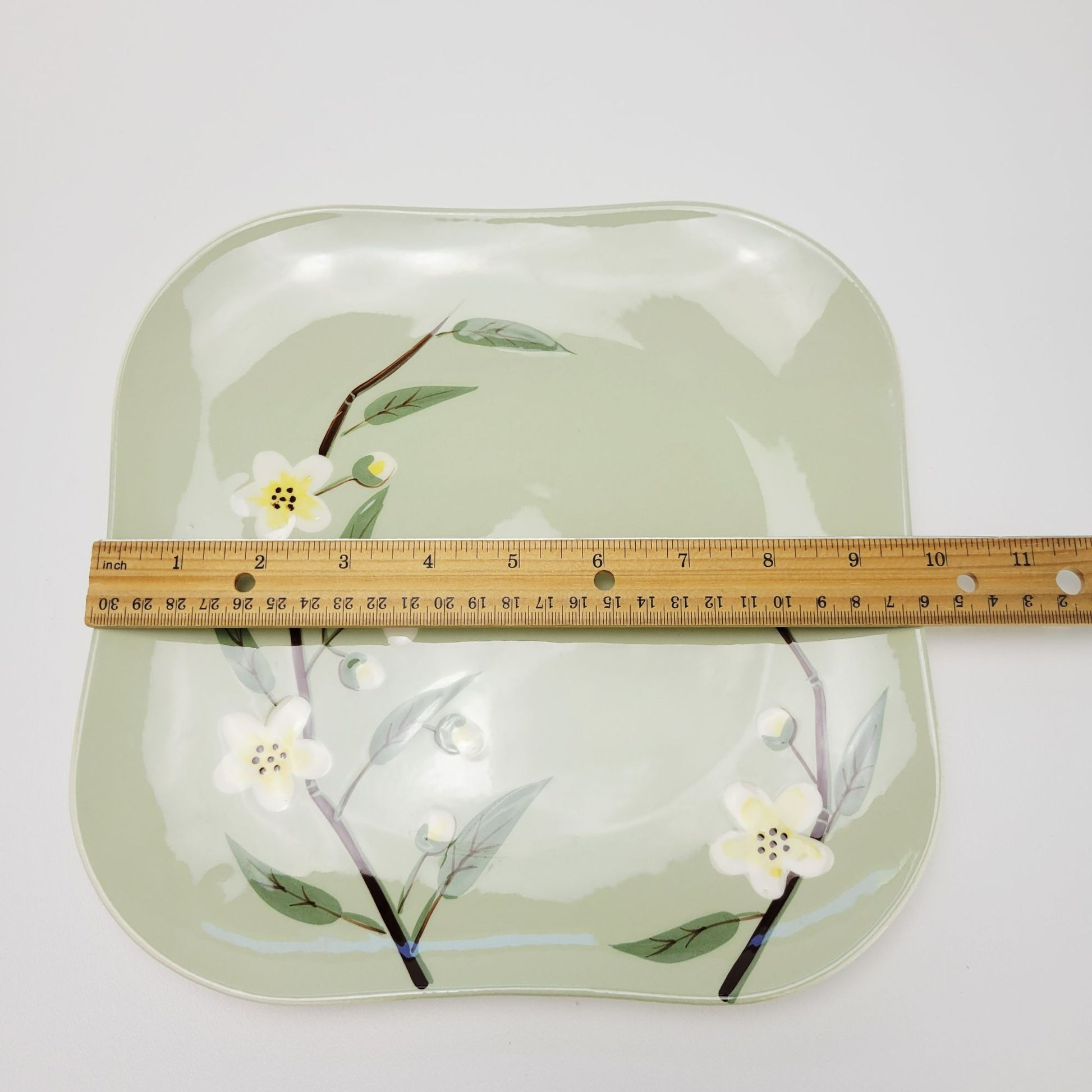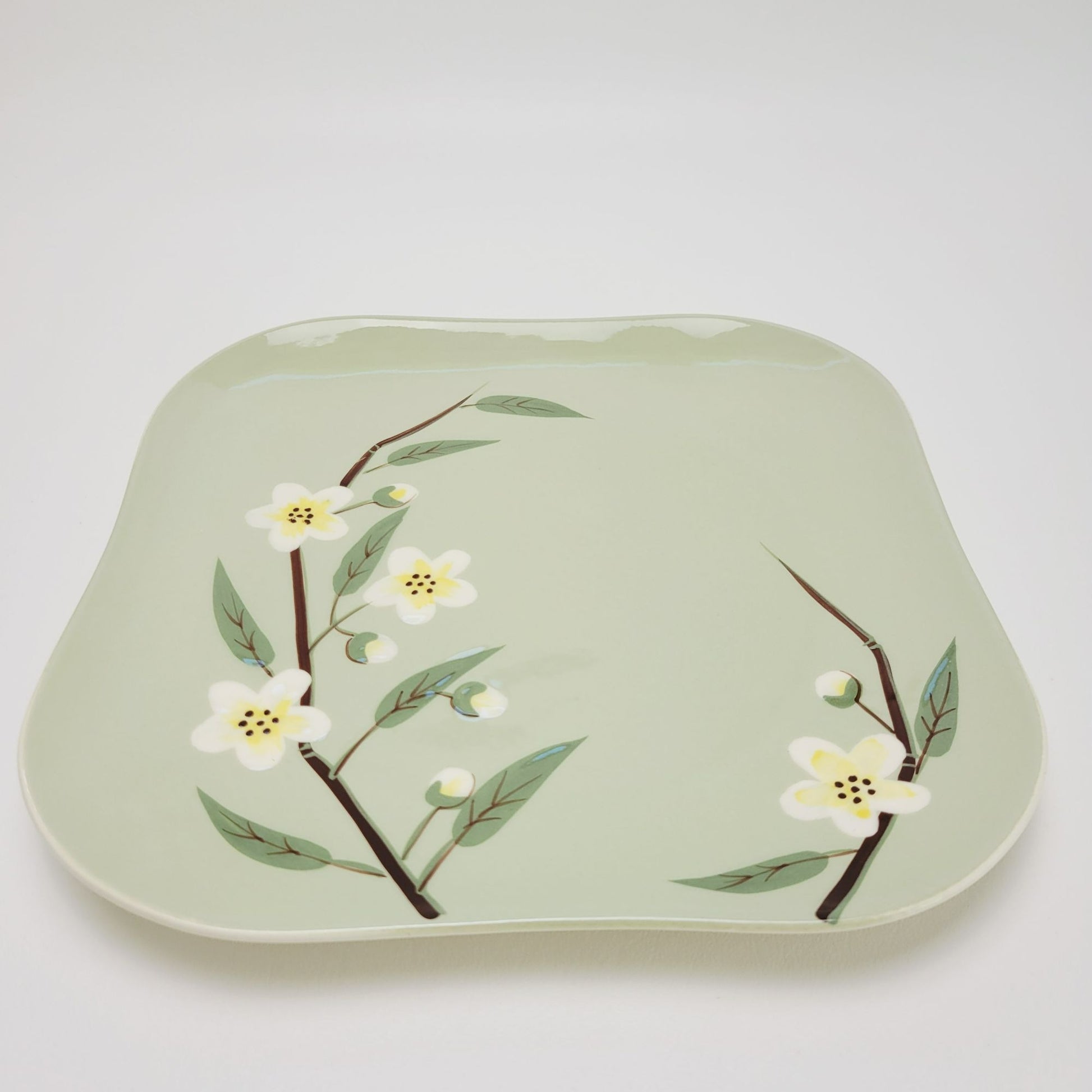 Weil Ware Blossom Celadon Square Dinner Plate, USA Made c.1946-55